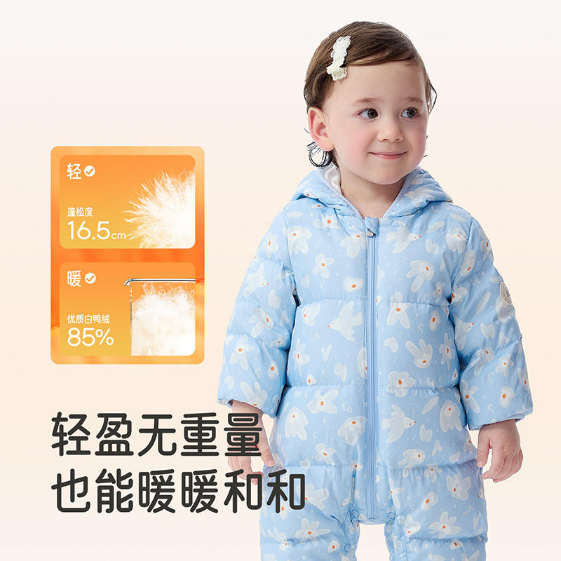 英氏婴儿羽绒连体衣秋冬加厚保暖新生儿外出服连帽羽绒服超韧绒冬