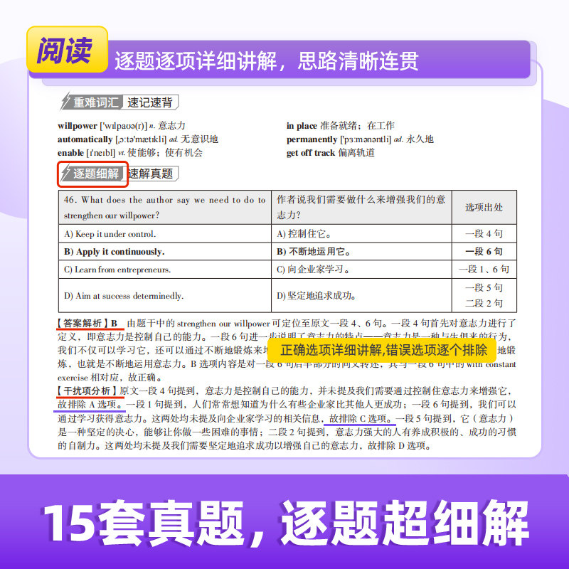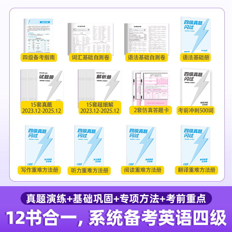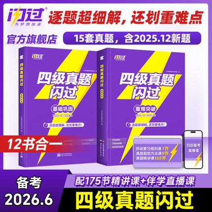 【旗舰店】备考2026年6月闪过英语四级考试英语真题词汇闪过 大学英语四六级历年真题试卷听力模拟题复习资料cet4阅读理解专项训练