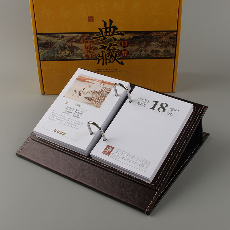2026年简约桌面办公台历架子底座翻页日历黄历记事养生诗词桌历