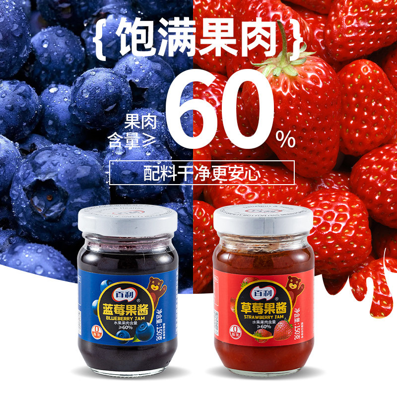 百利蓝莓酱果酱含量大于60%涂抹面包吐司酱草莓酱甜品用原料150g
