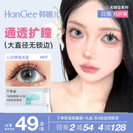 韩姬儿HanGee打碎高光美瞳无锁边大直径日抛10片蓝色彩色隐形眼镜