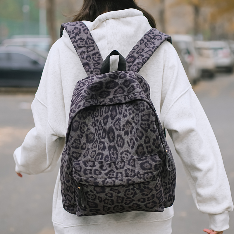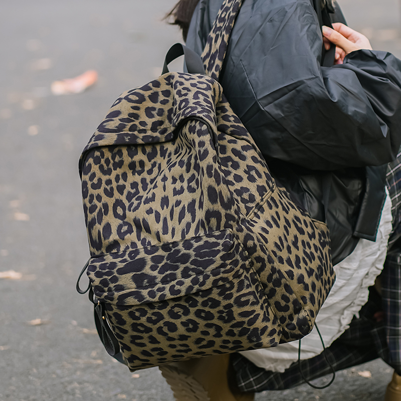 菇八八新款时尚豹纹双肩包女