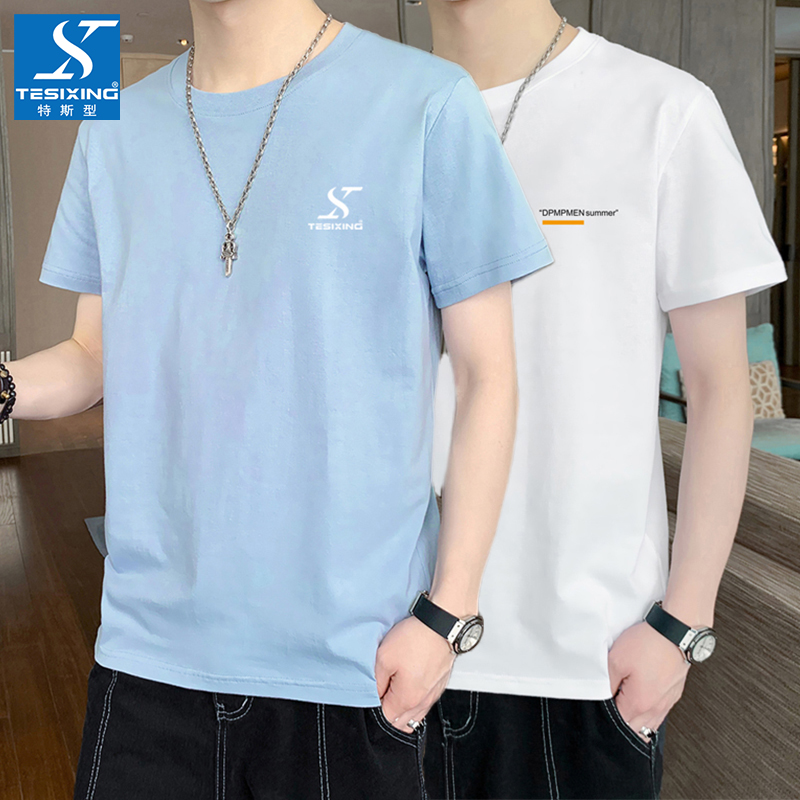 以纯YISHION纯棉t恤男士宽松印花夏天短袖青少年潮流休闲半袖体恤