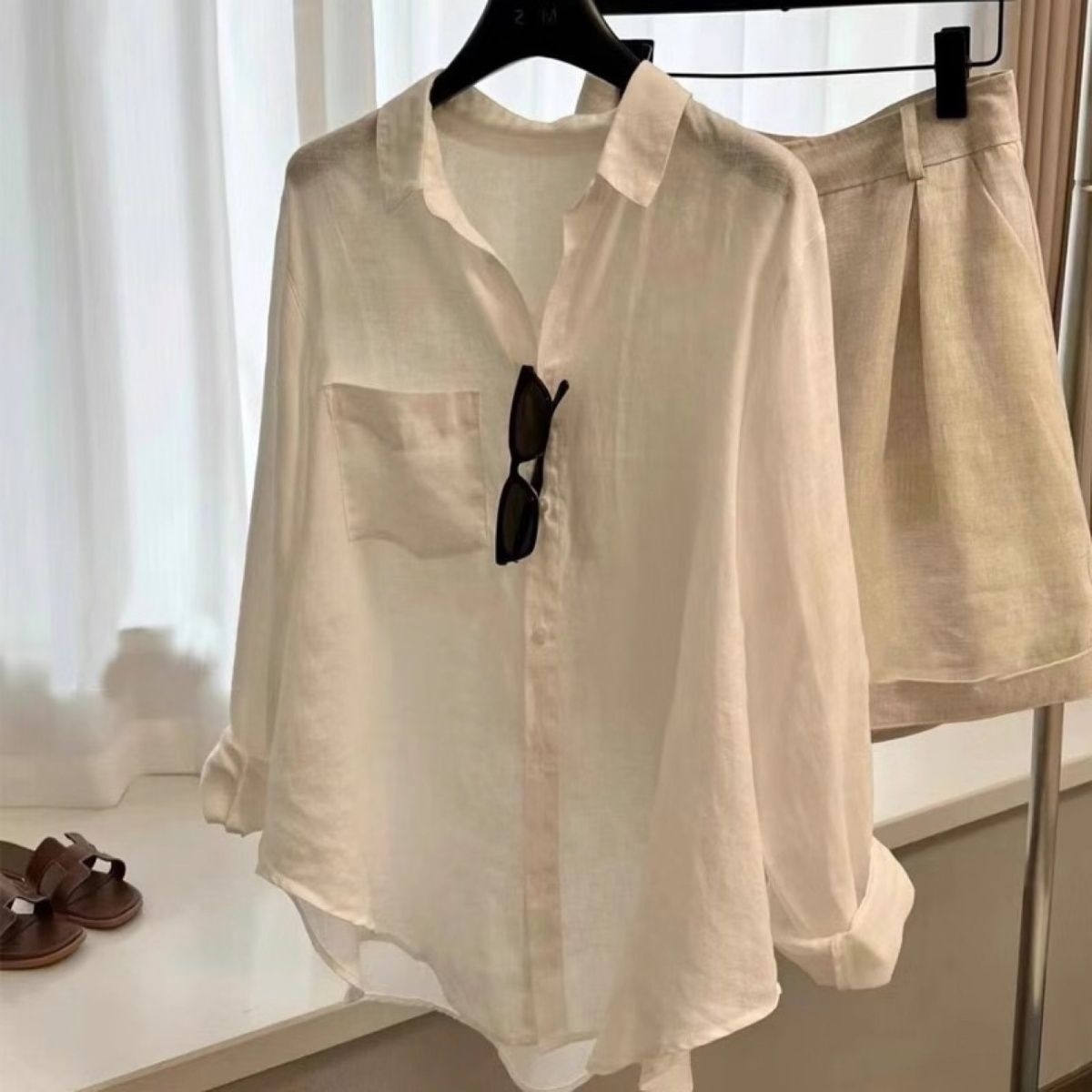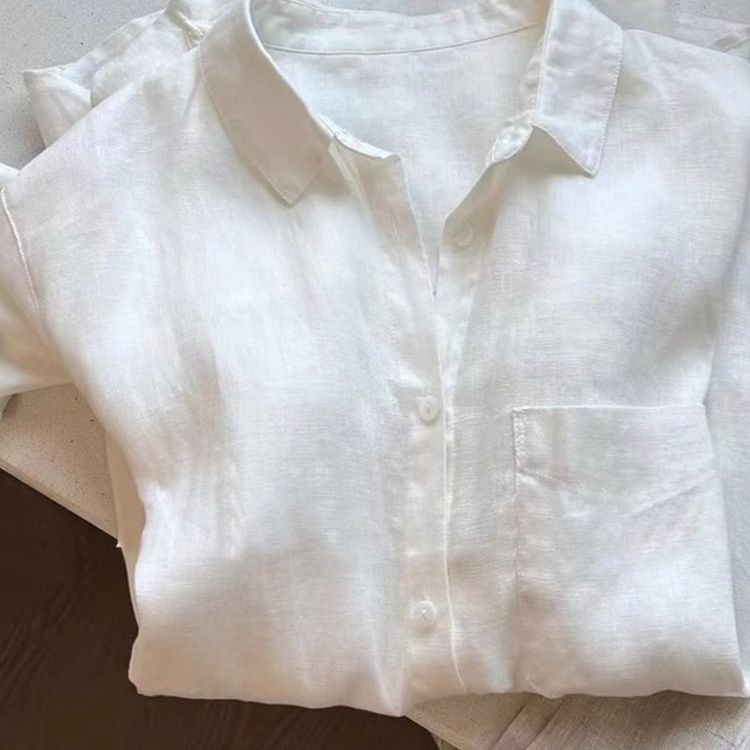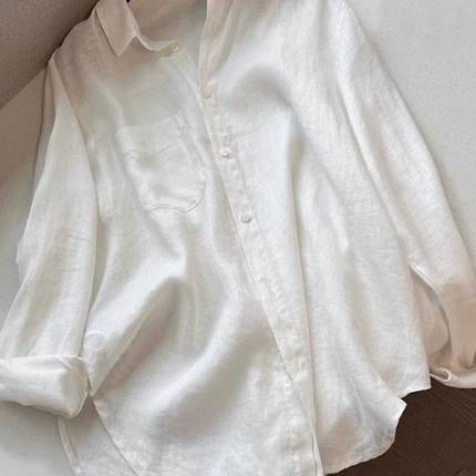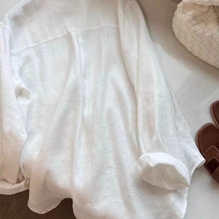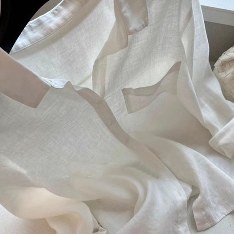 白色亚麻老钱风衬衫女夏季薄款宽松显瘦高端棉麻衬衣长袖防晒上衣
