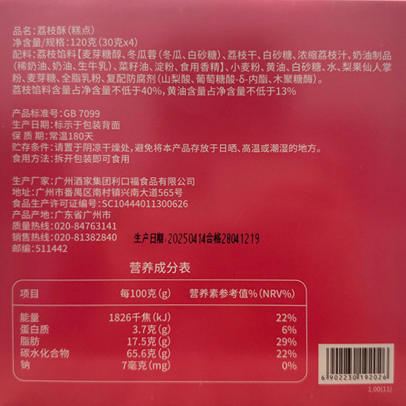 广州酒家利口福荔枝酥120g岭南风味特产糕点年货礼盒礼品食伴手礼