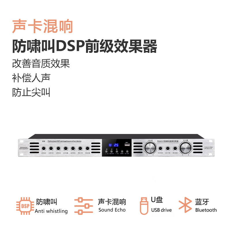 声卡混响前级效果器带家庭KTV卡拉OK唱歌功放音响话筒防啸叫
