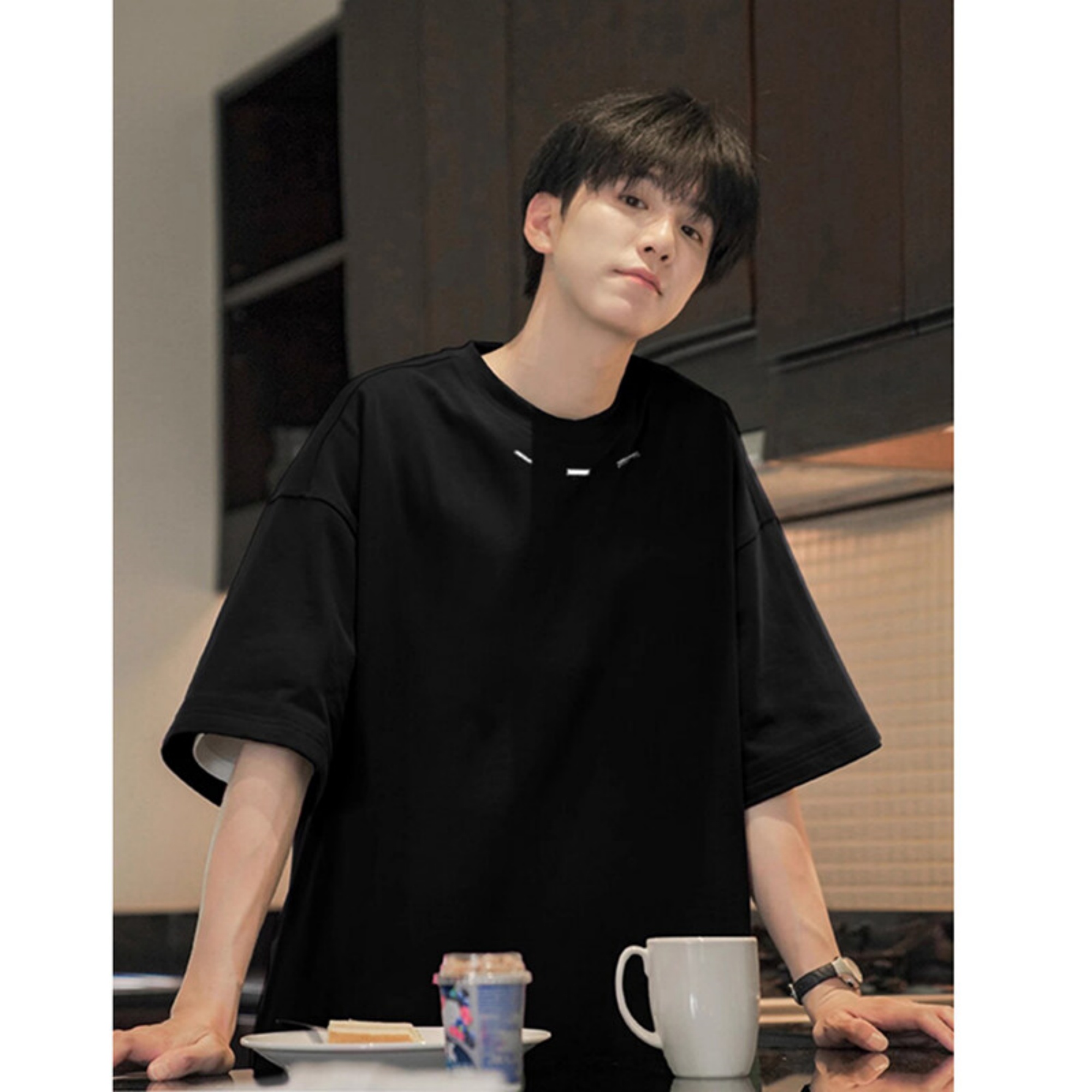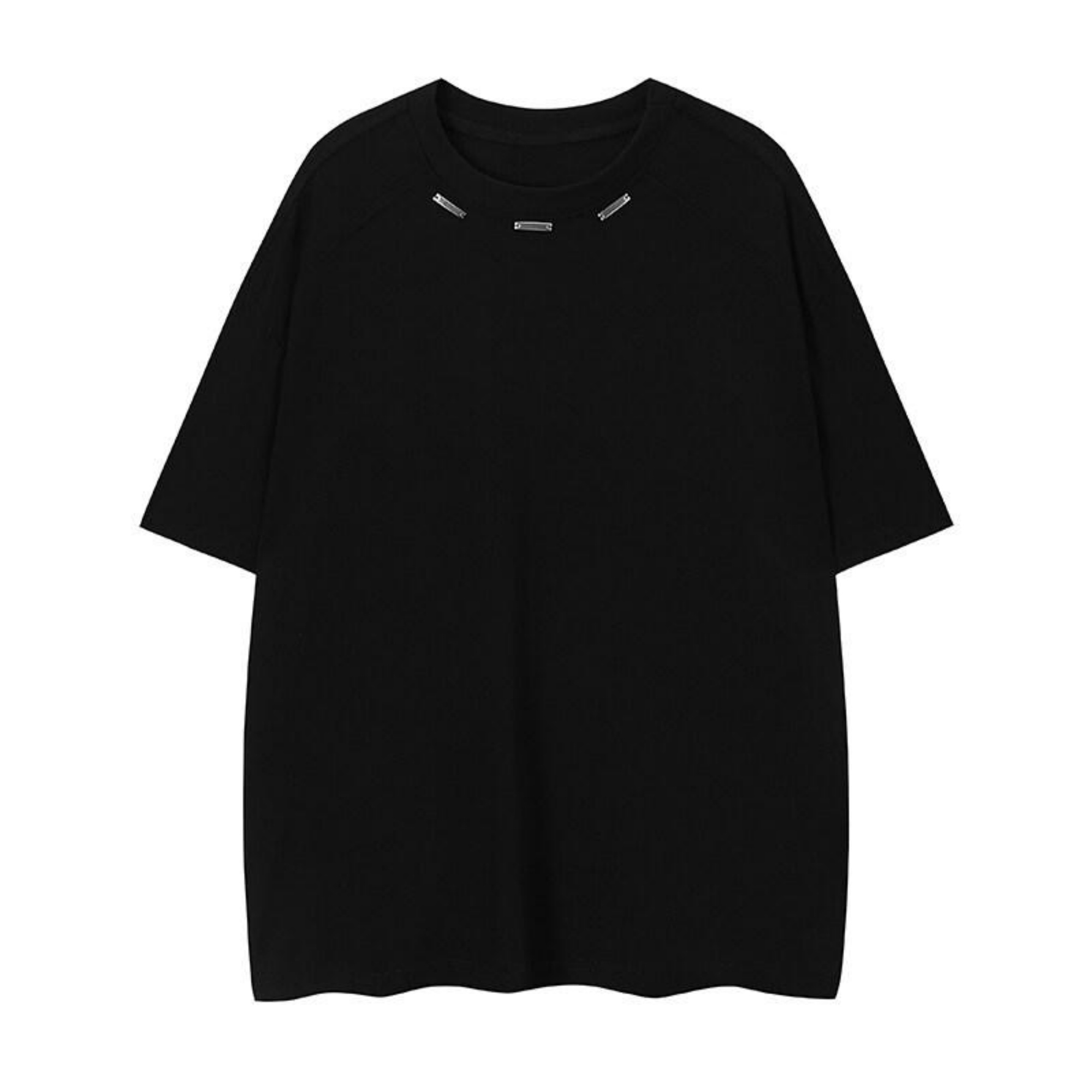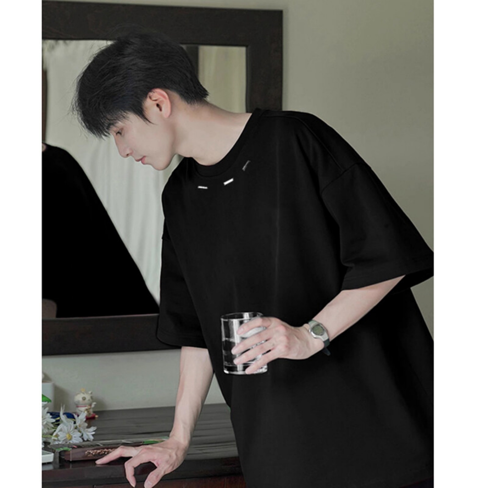 胖胖哥美式高街纯棉金属装饰短袖休闲宽松T恤男夏季大码半袖上衣