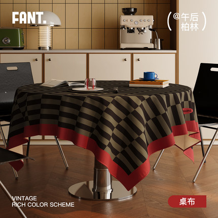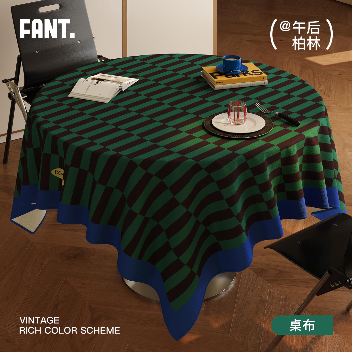 午后柏林覆古氛围感圆形桌布棉麻布艺防水免洗隔热防烫茶几布定制