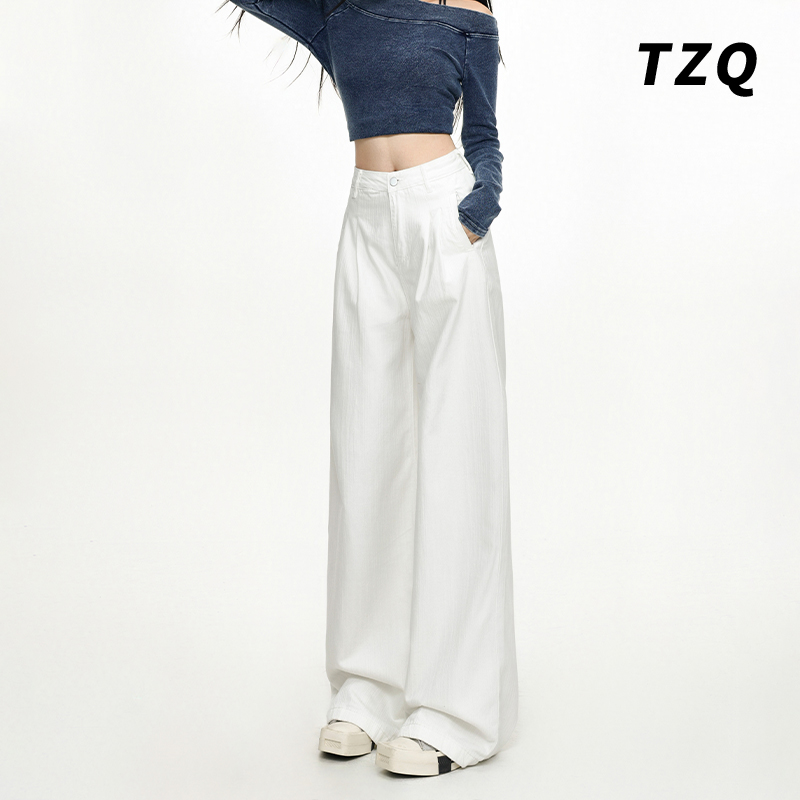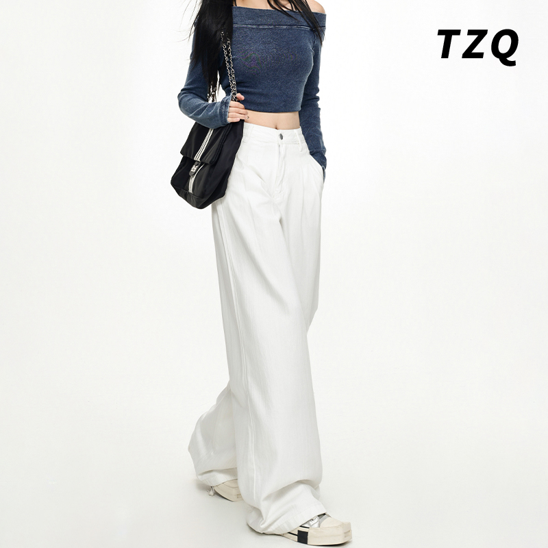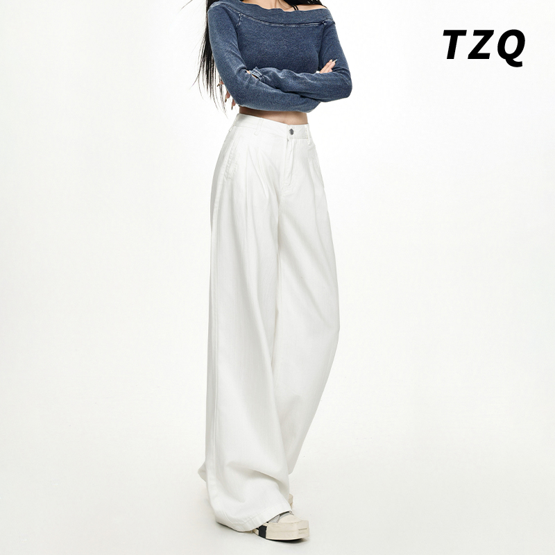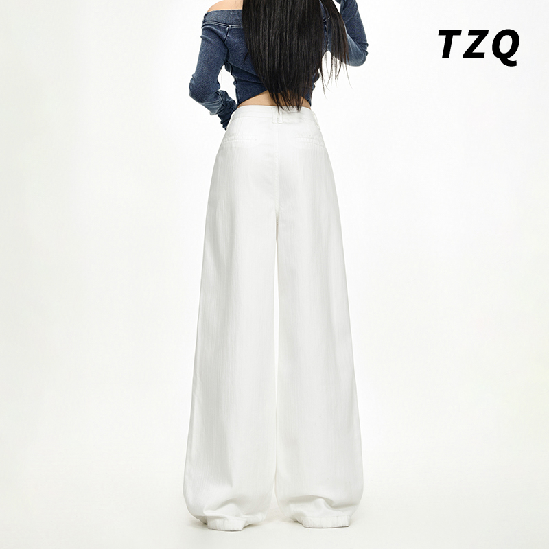 垂感阔腿牛仔裤女夏季薄款2025新款时尚百搭宽松显瘦褶皱拖地裤子