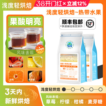 浅度咖啡豆热带水果风味 新鲜轻烘焙 可磨黑咖啡粉手冲云南小粒