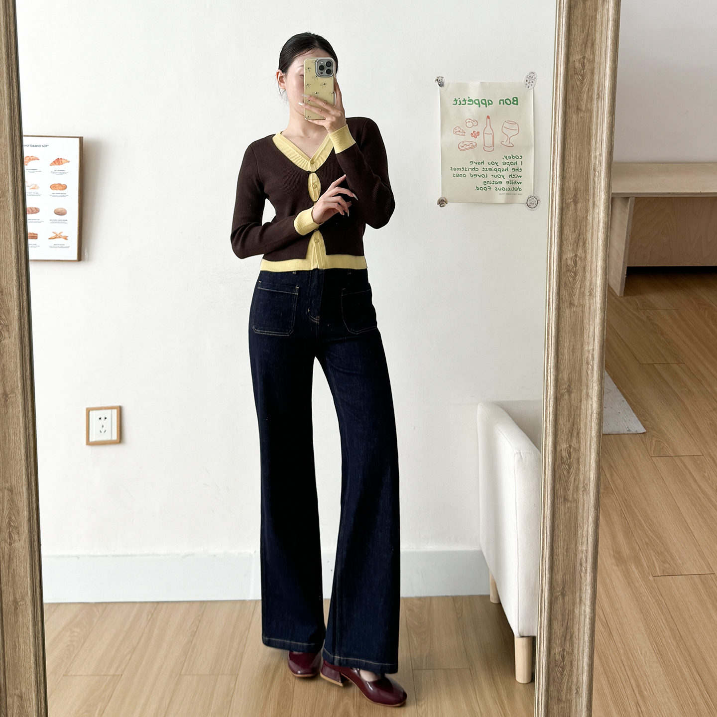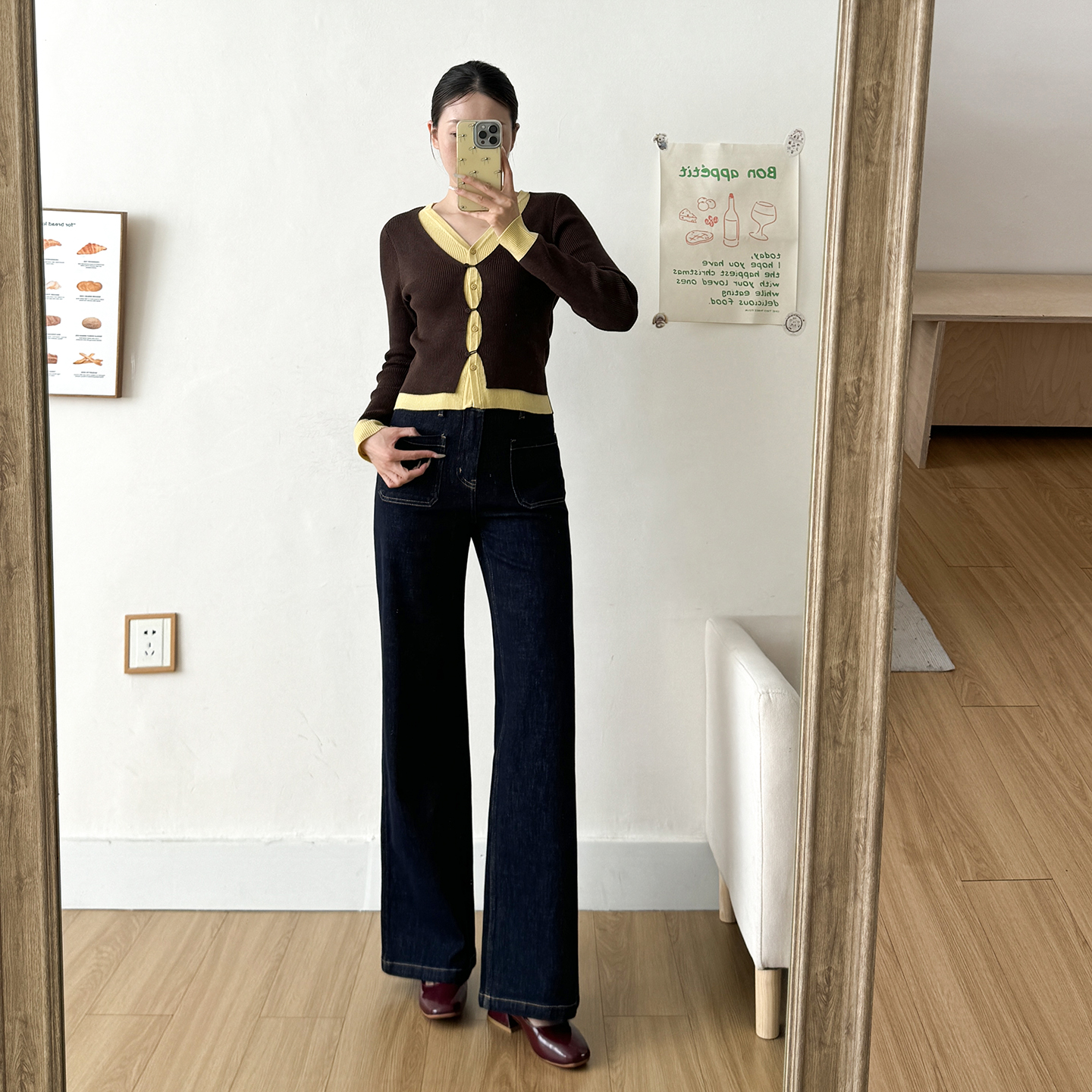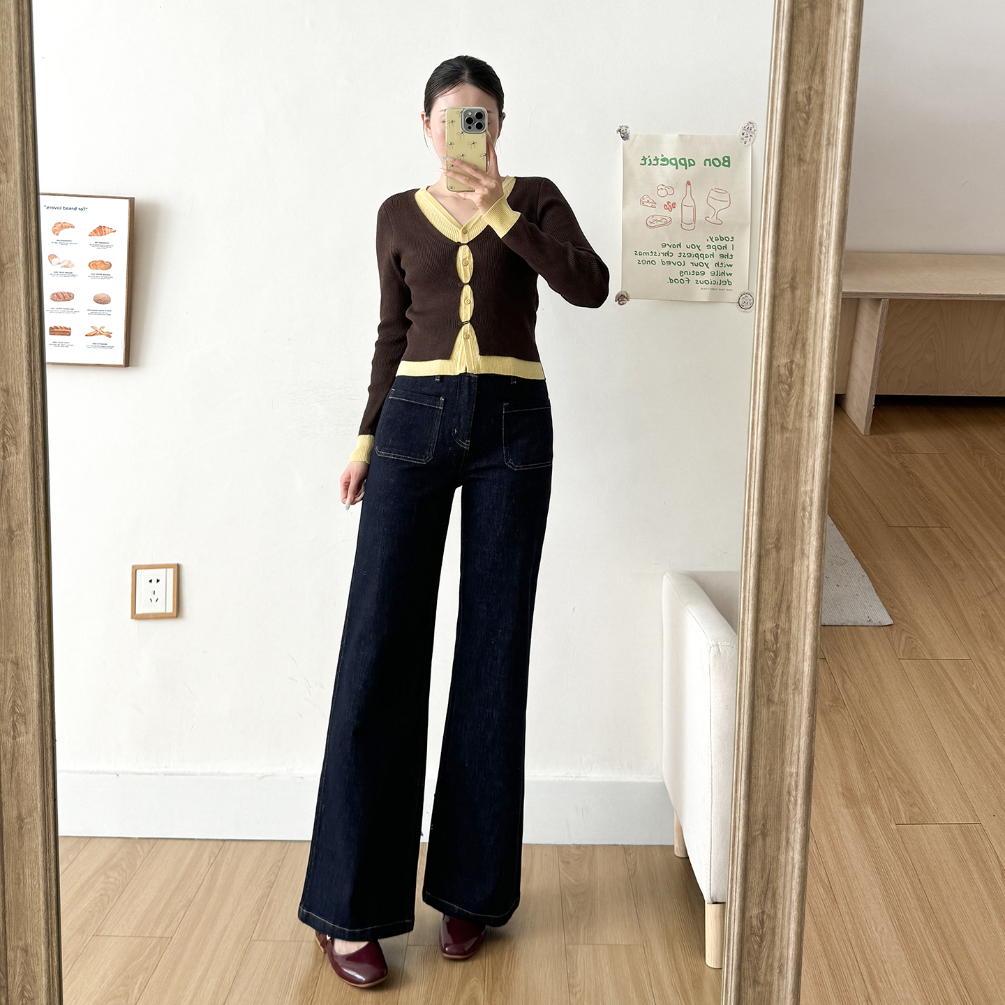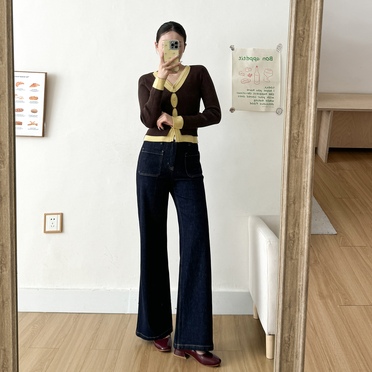 直腿~四面弹法式直筒微喇叭牛仔裤女2025秋新款高腰显瘦阔腿长裤