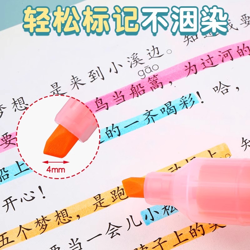晨光荧光笔米菲大容量学生用手帐专用记号笔彩色划重点荧光标记笔