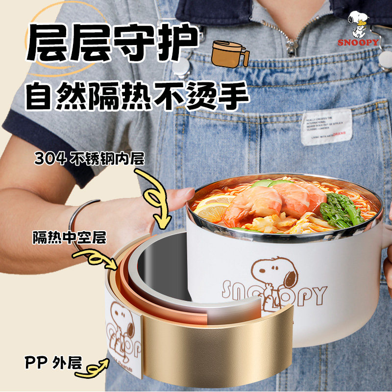 史努比泡面碗宿舍用学生带盖大容量碗不锈钢沥水带手柄保温饭盒