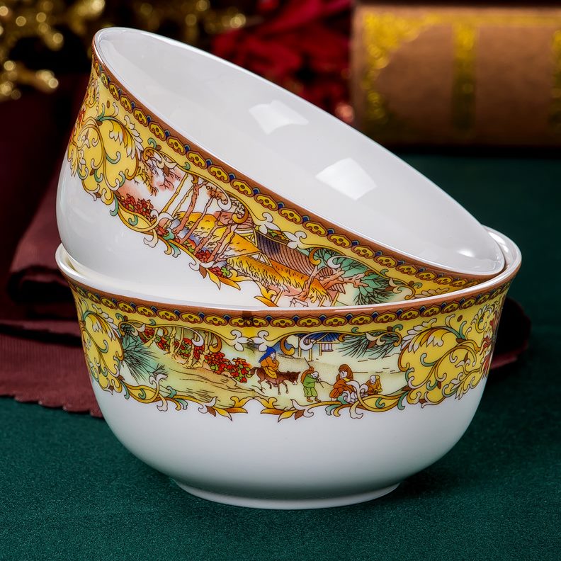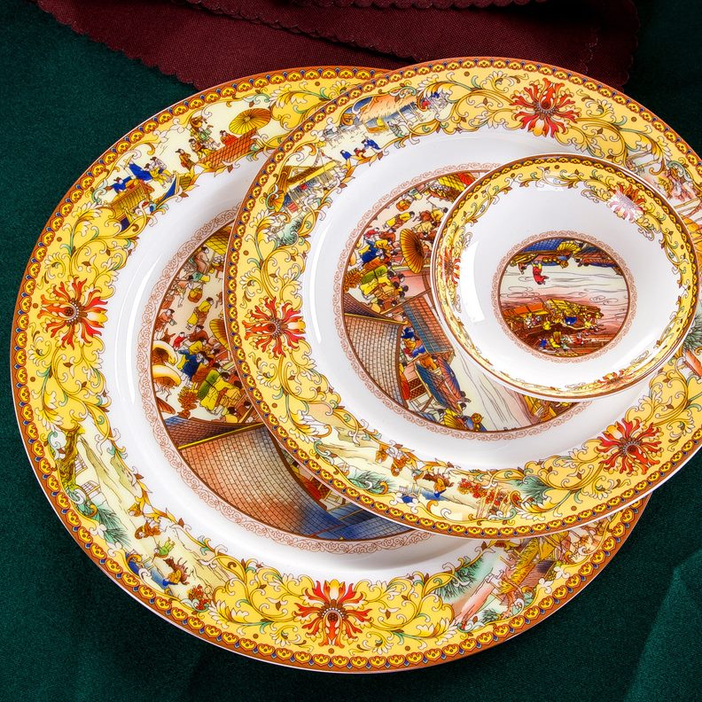 28头餐具中彩家用60新品送礼头釉骨瓷餐具碗盘碗碟套装