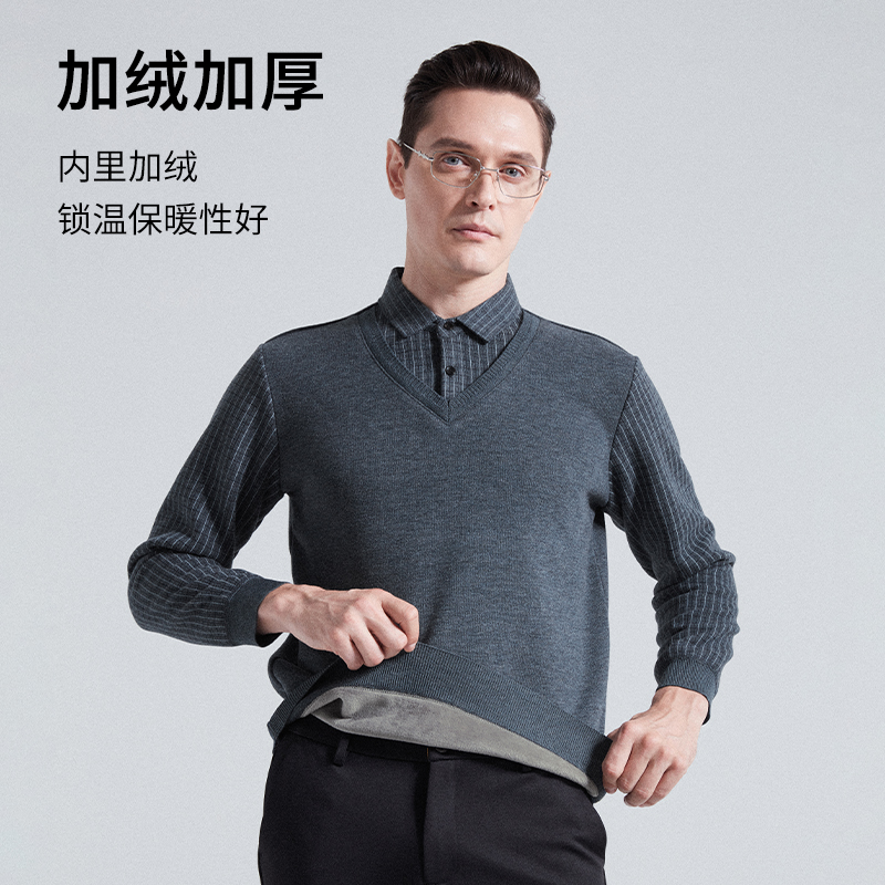 杉杉官方商务假两件针织Polo衫男士高级感翻领春秋绵羊毛上衣内搭
