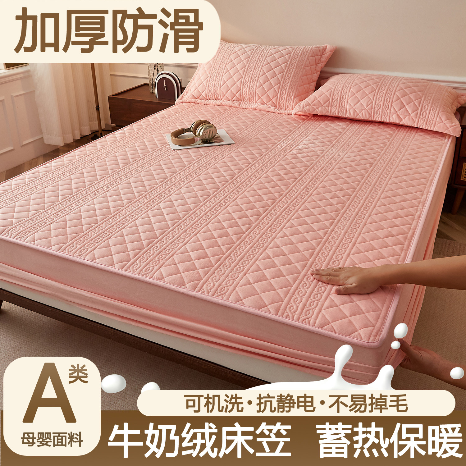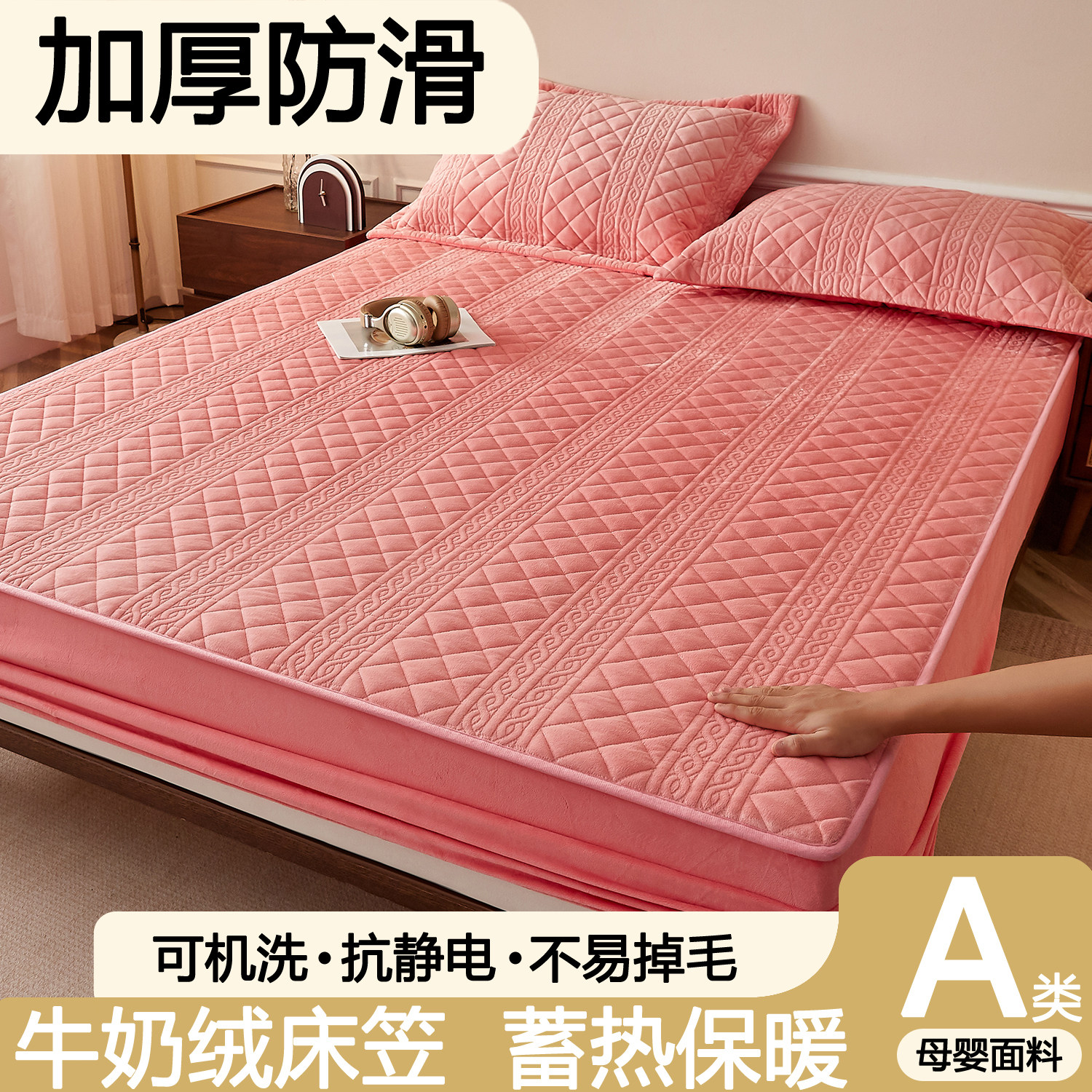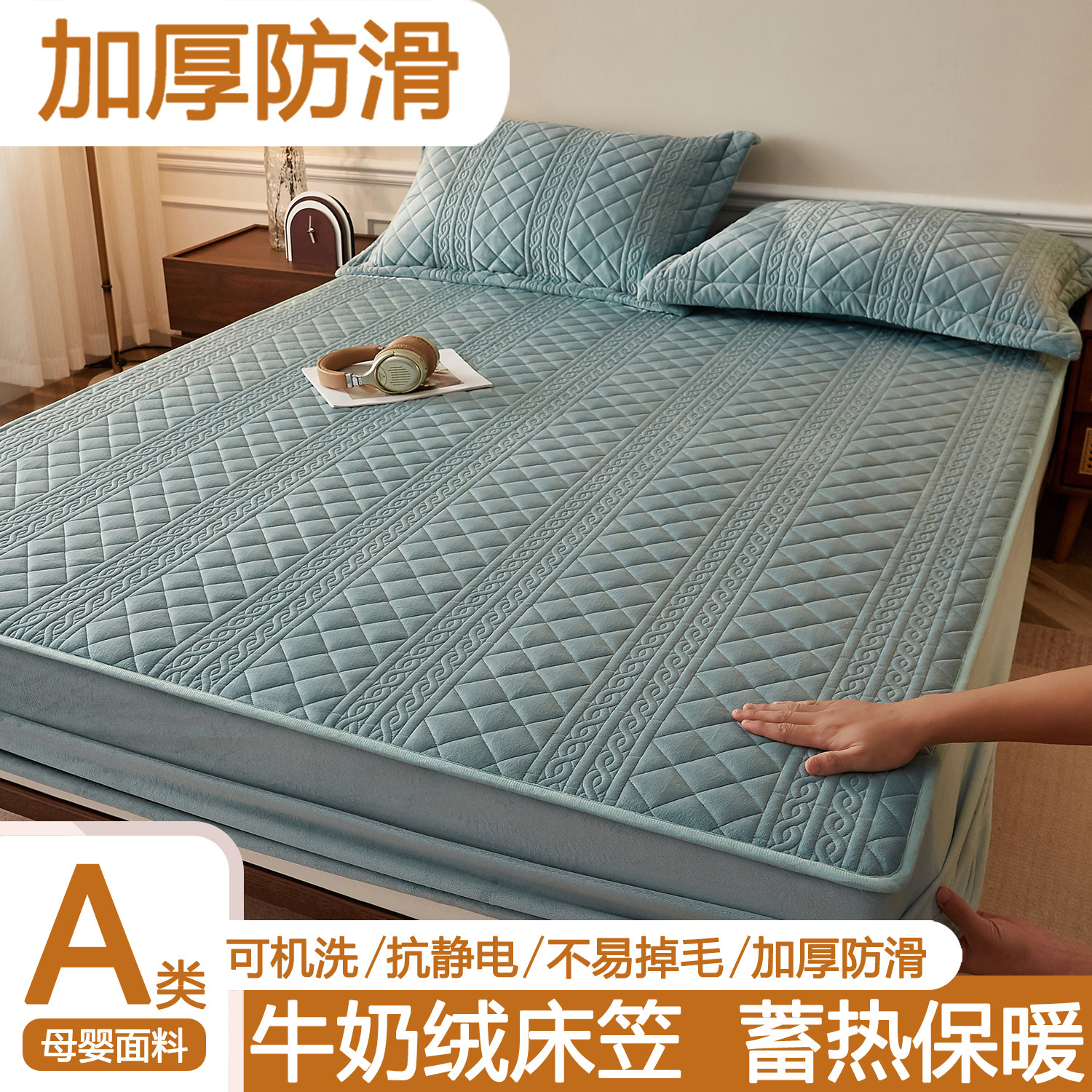 A类加厚牛奶绒夹棉床笠床罩席梦思防尘罩床垫保护罩防滑床单床套