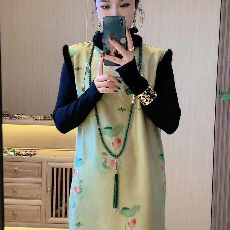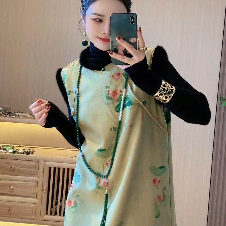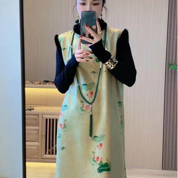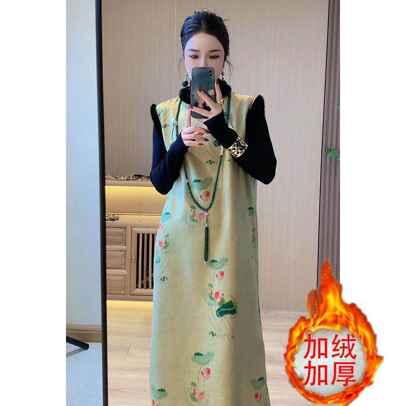 加绒加厚新中式女装马甲背心改良旗袍连衣裙高级感高端国风套装裙