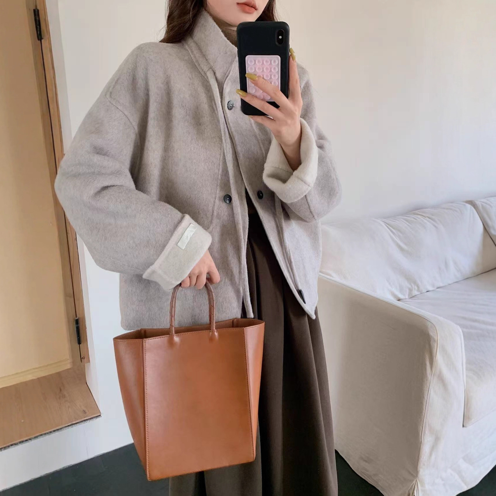 双面羊毛大衣女短款韩版宽松立领甜美减龄小个子显瘦羊绒呢子