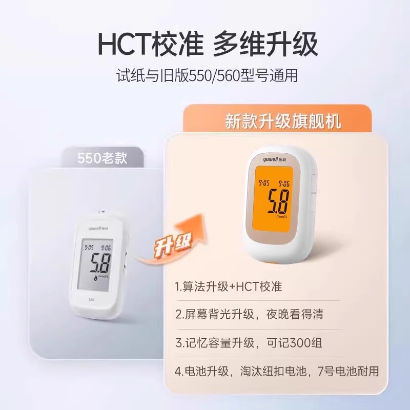 鱼跃550/560血糖试纸条家用血糖仪医用测量血糖的仪器官方旗舰店
