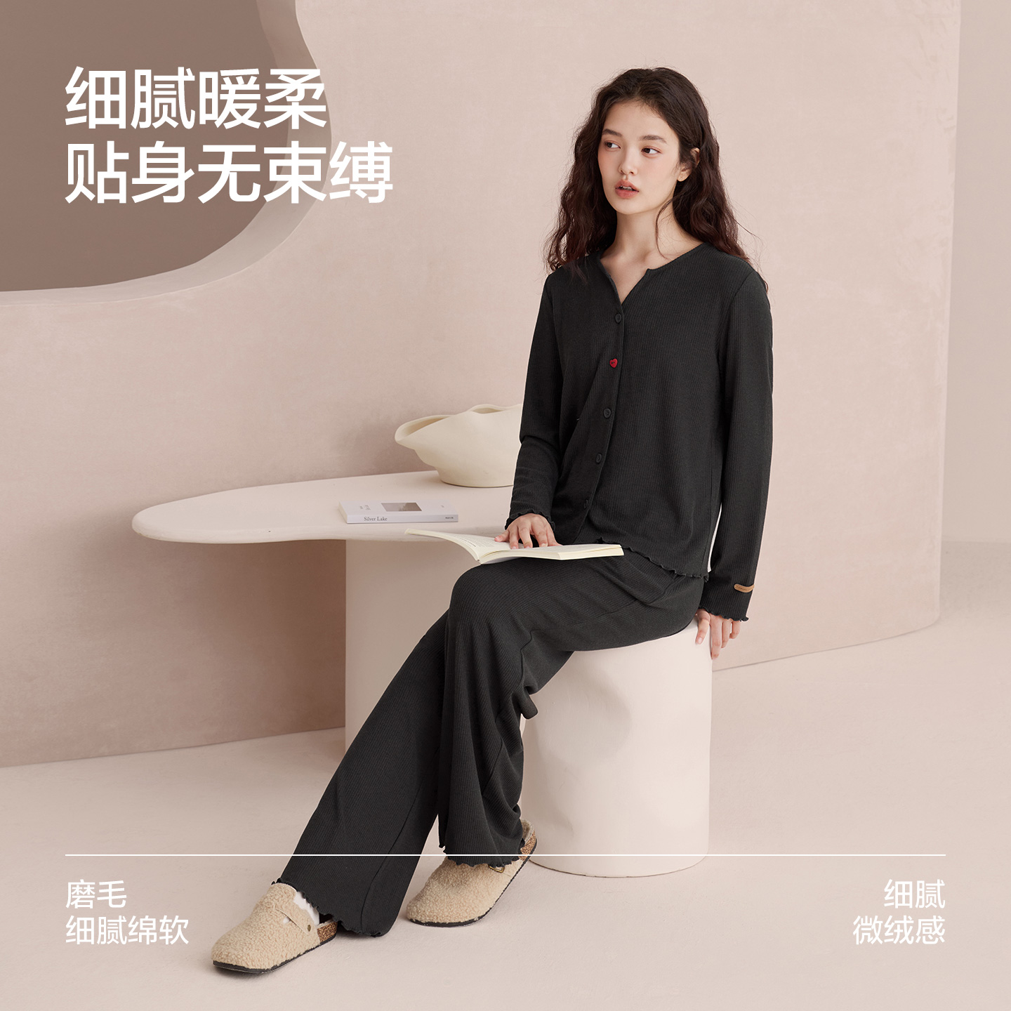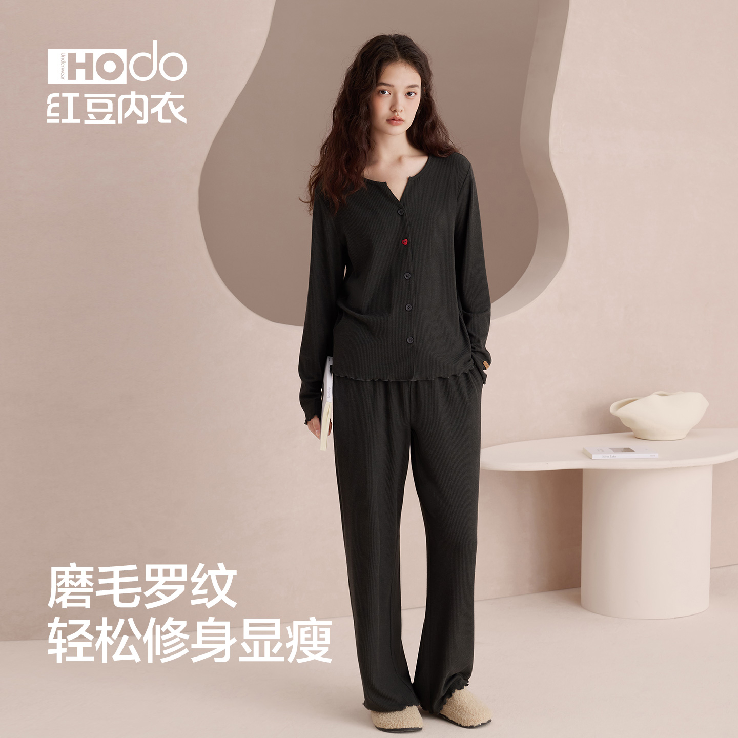 红豆女士睡衣开衫款春秋长袖磨毛新款慵懒风显瘦可外穿家居服套装