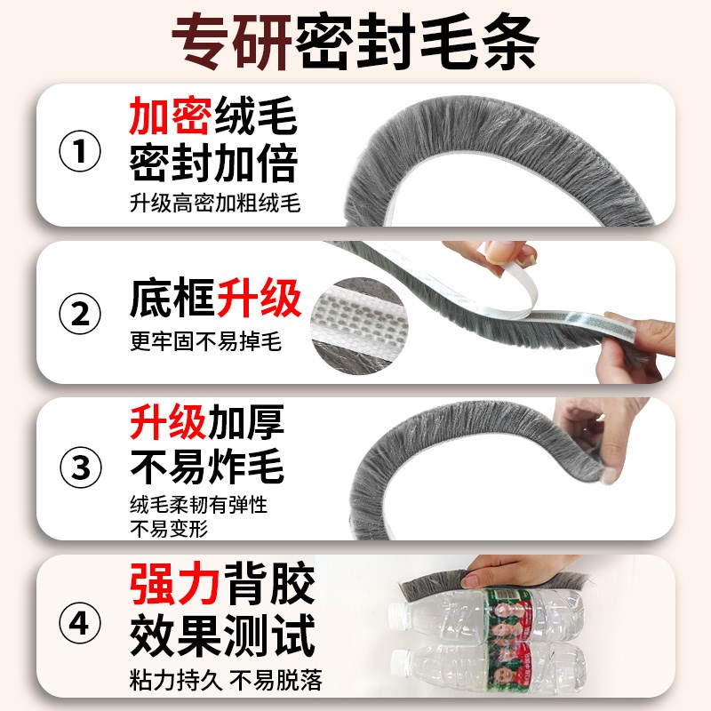 推拉窗密封条玻璃门窗户门缝防风隔音毛条自粘老式铝合金门窗卡槽