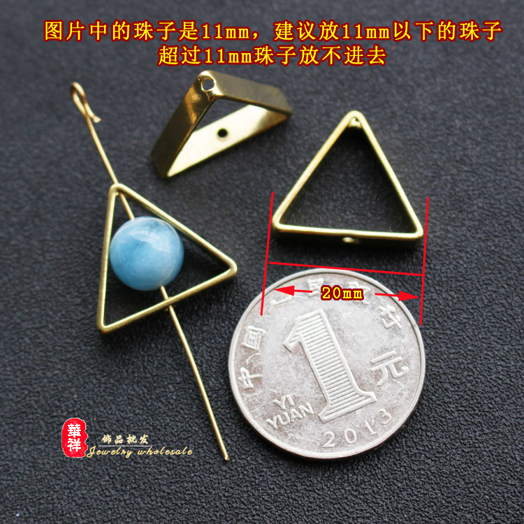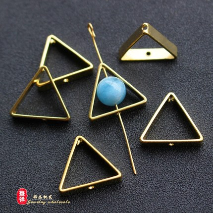 20mm纯铜双孔三角形框 黄铜直孔珠框 DIY耳环金属饰品配件材料