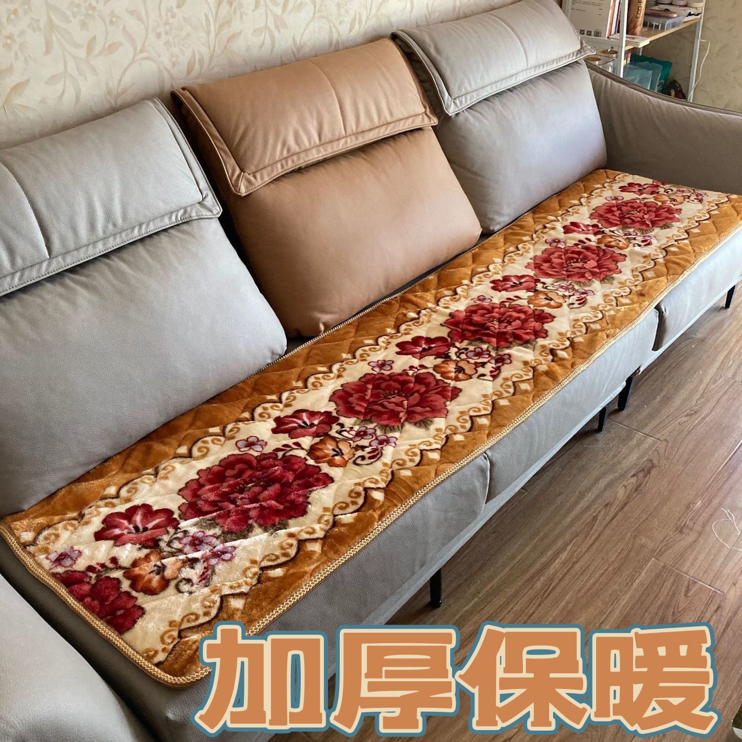 冬季加厚法莱毛绒防滑实木沙发垫子三件套 春秋椅红木沙发椅座垫