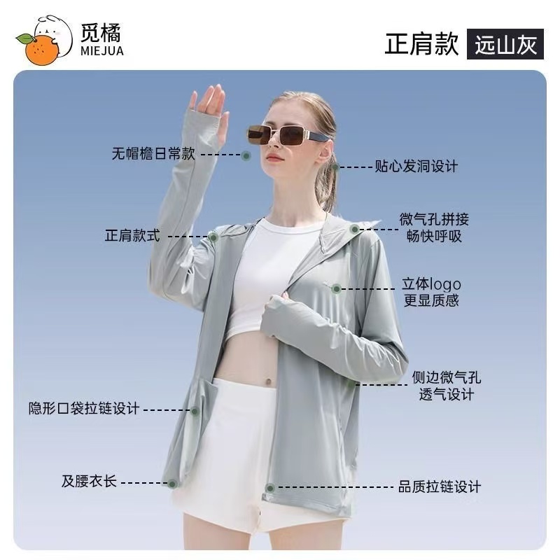 觅蜜橘正肩款防晒衣防紫外线外套户外运动女上衣开衫凉感透气