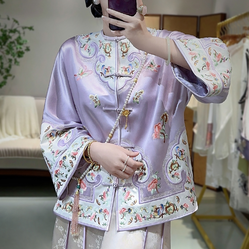 新中式轻国风上衣醋酸刺绣复古唐装女高端气质宽松早秋新款外套