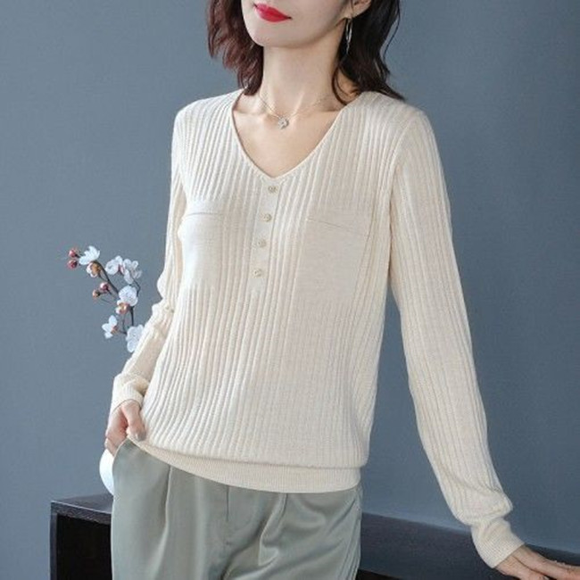 v领毛衣女秋冬季新款时尚洋气纯色短款高级感上衣套头针织打底衫
