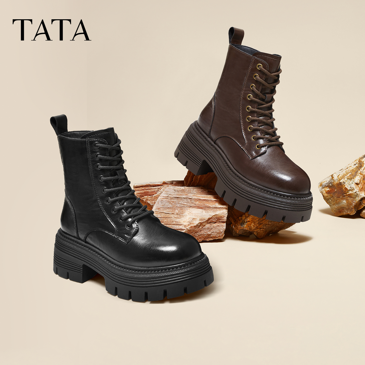【所有女生的衣橱直播间】TATA他她百搭简约女时尚马丁靴新款