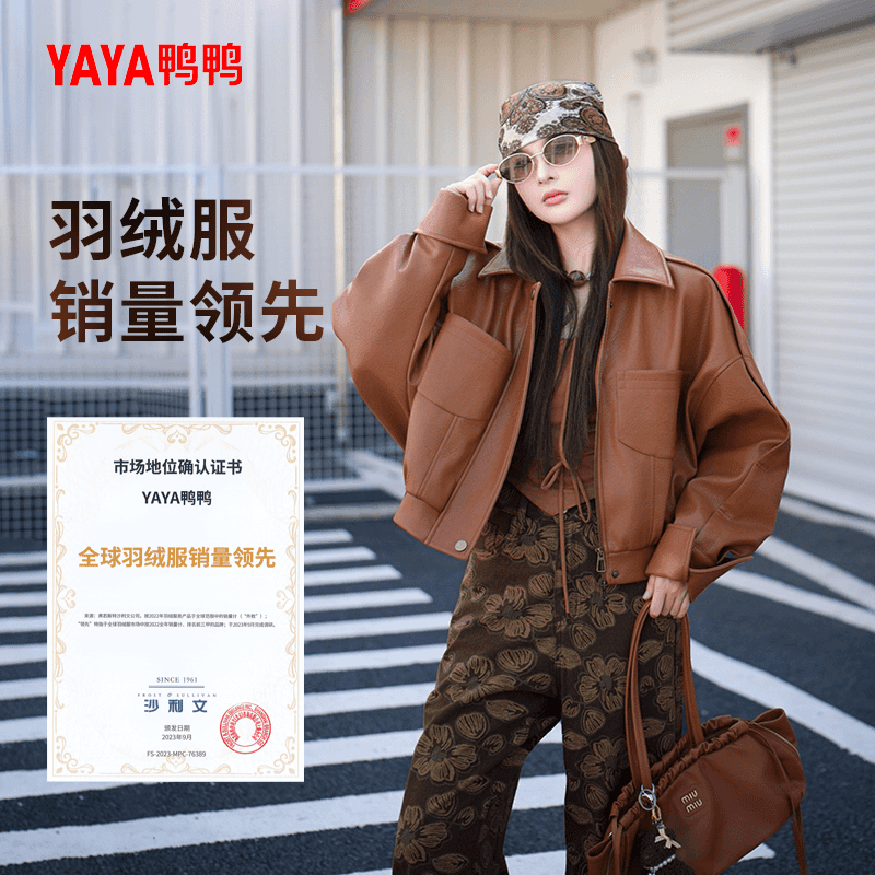鸭鸭羽绒服2025年秋冬装新款女士复古皮衣外套时尚翻领韩版短款