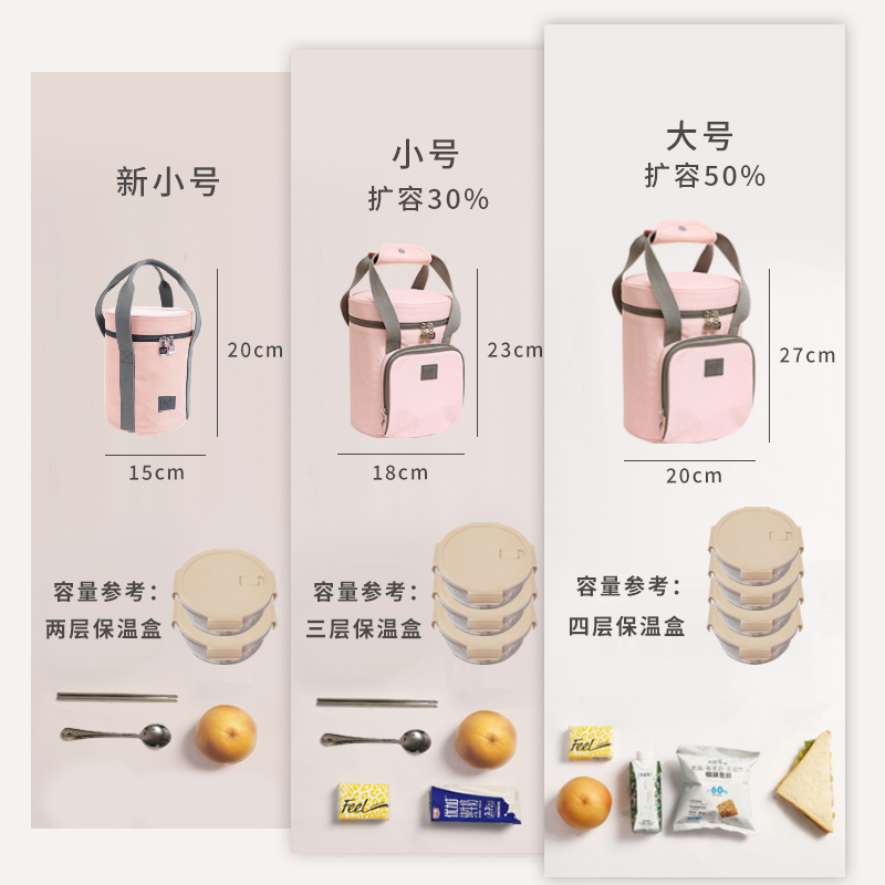 饭盒保温袋圆形保温桶手提袋上班族便携加厚铝箔保温大容量便当包