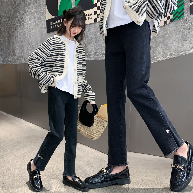 女童牛仔裤2024春秋新款儿童中大童黑色小脚女孩紧身长裤夏季薄款