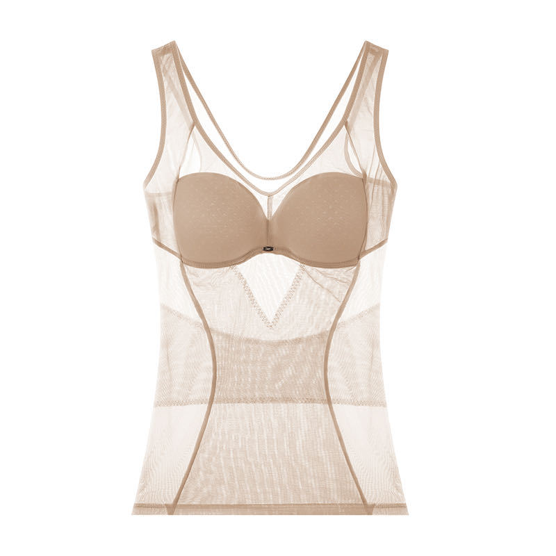 胖mm外贸性感透明网纱束腰收腹衣塑形打底背心免穿文胸薄款塑身衣