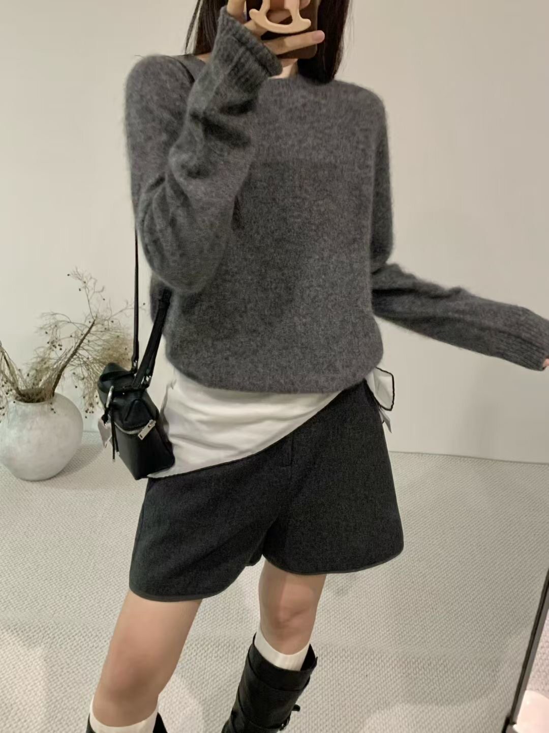 ETHOS韩国东大门2025早秋新款简约百搭圆领套头针织衫毛衣上衣女
