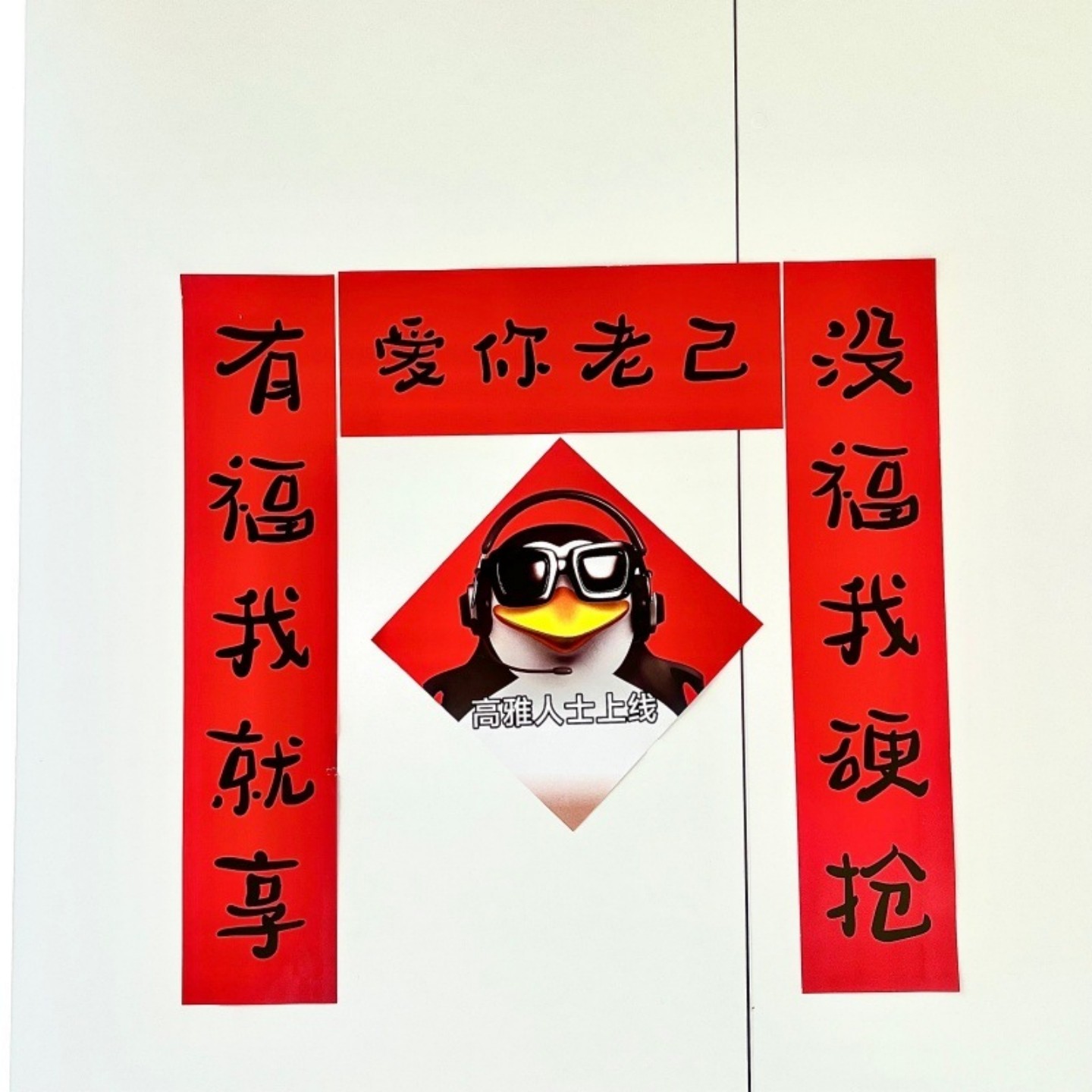 爱你老己对联高雅人士企鹅抽象春联创意整蛊宿舍装饰门联可爱福字