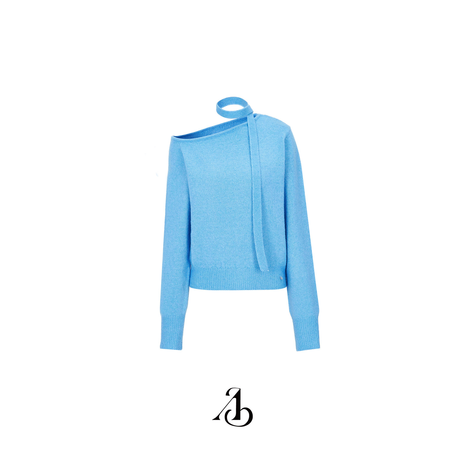 ablueberry 时尚设计感韩版系带毛衣女春季露肩辣妹高级感针织衫