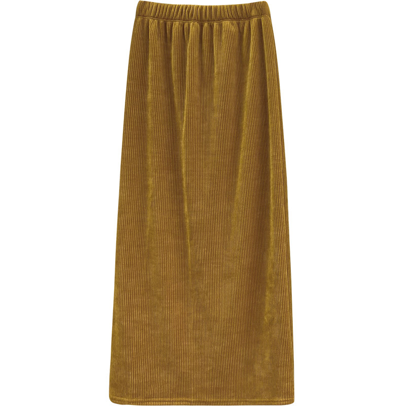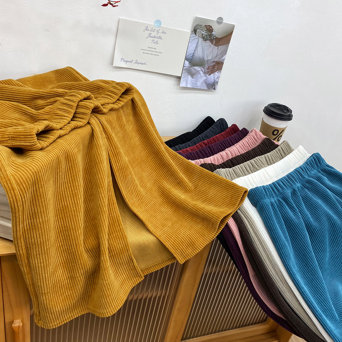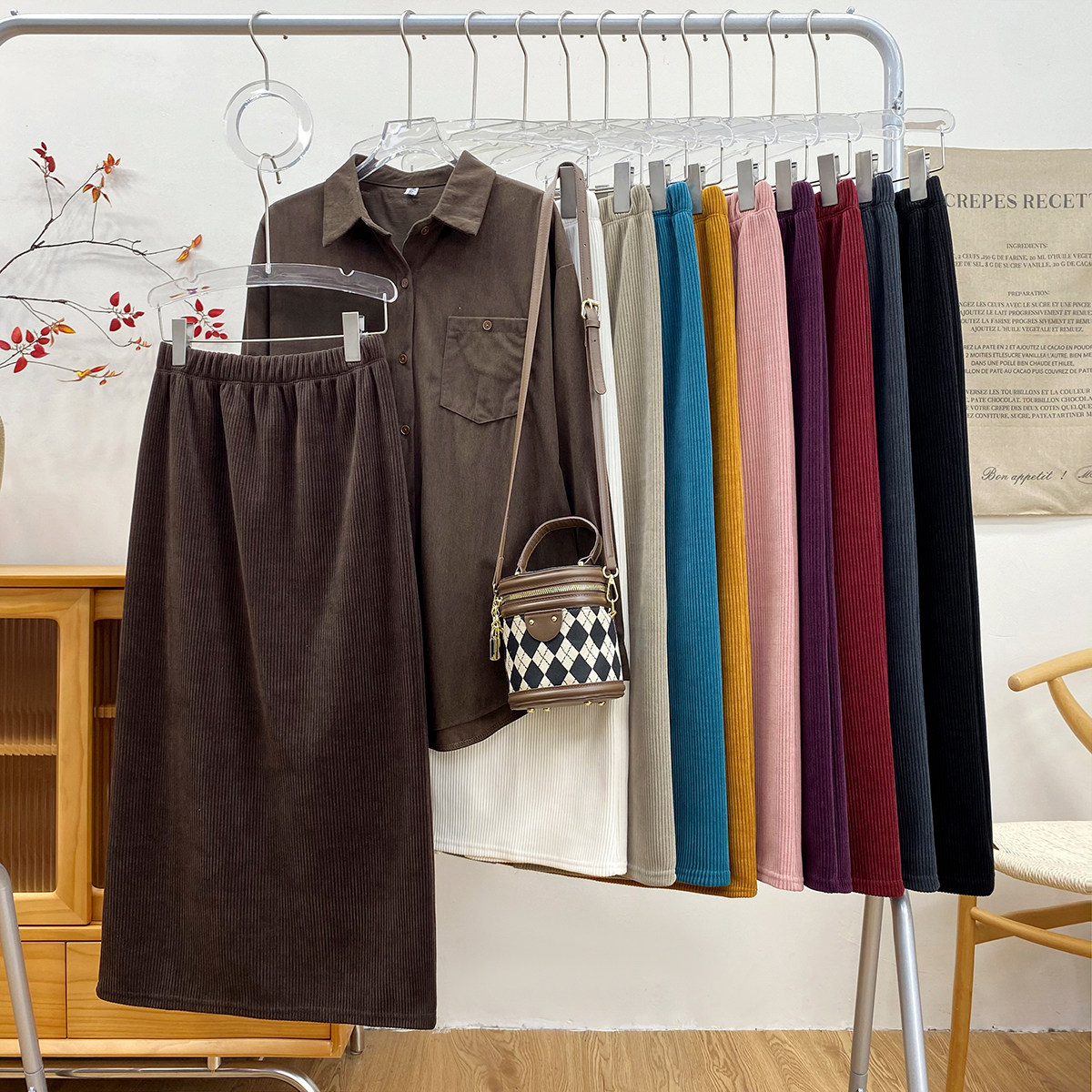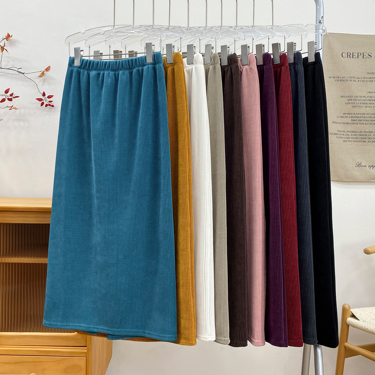 复古后开叉雪尼尔半身裙女秋冬灯芯坑条绒a字直筒休闲包臀一步裙