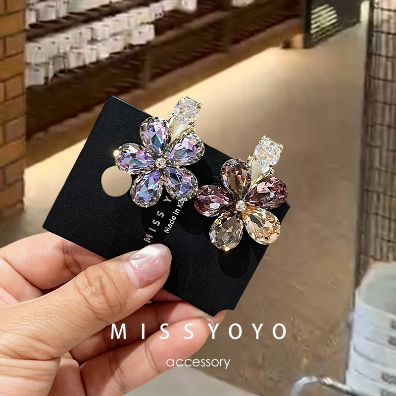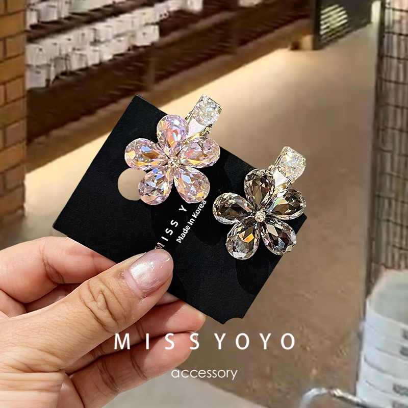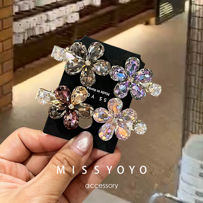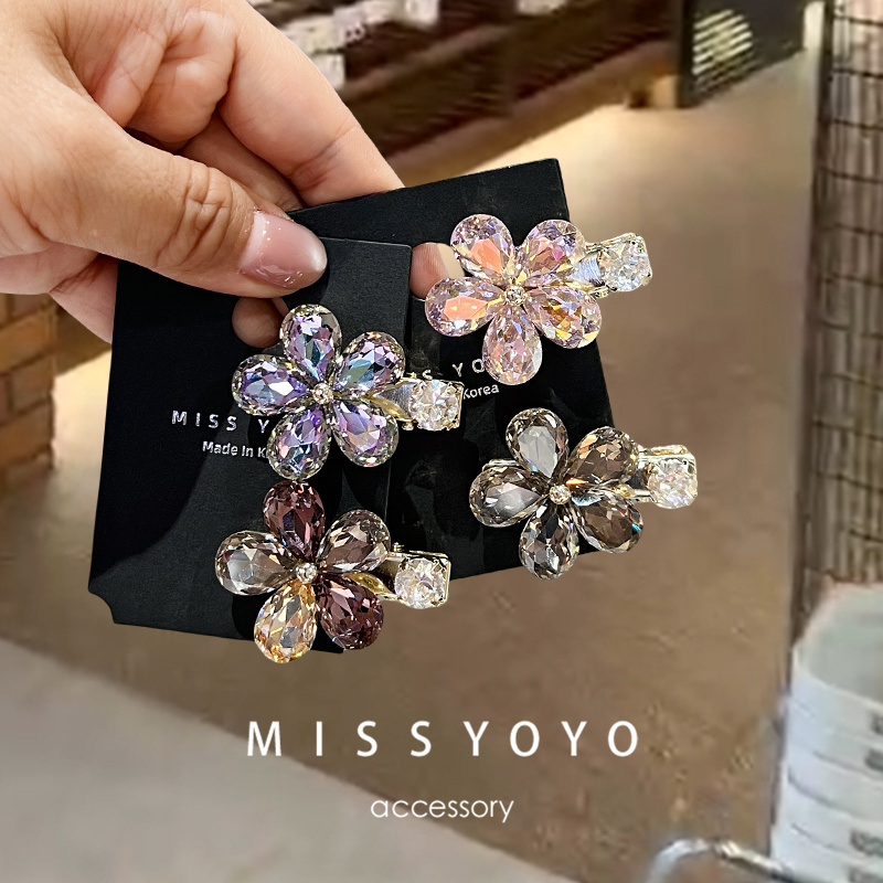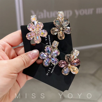 现货!韩国超闪亮水钻水晶刘海发夹花朵小号侧边夹鸭嘴夹顶夹碎发
