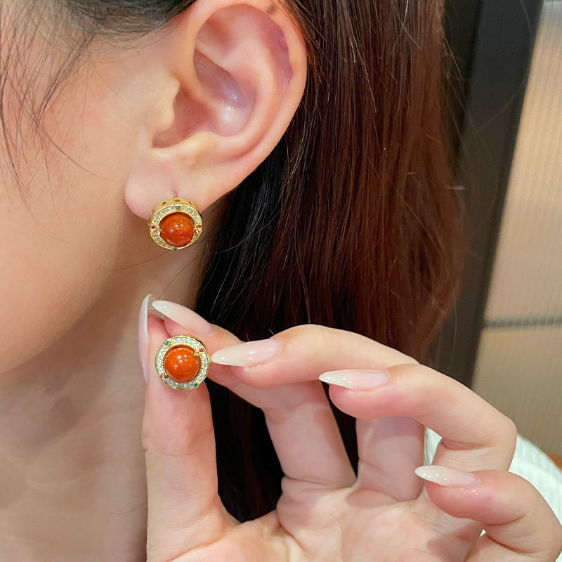 琳琯瑛南红s925银耳钉