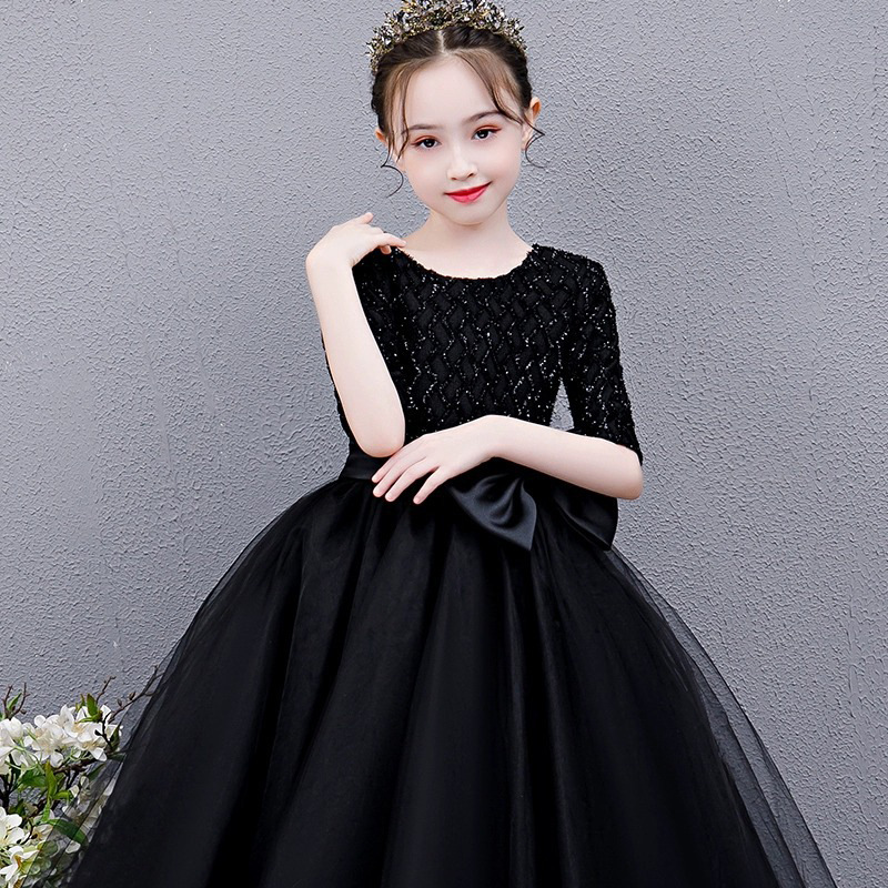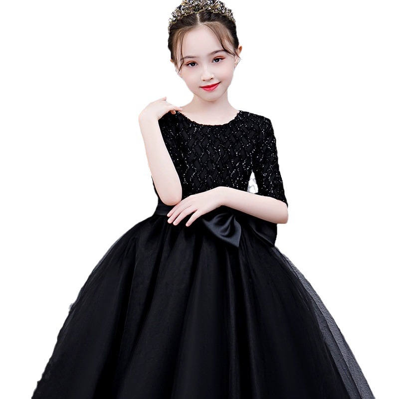 儿童礼服公主裙洋气钢琴演奏女童模特走秀黑色小主持人走秀服