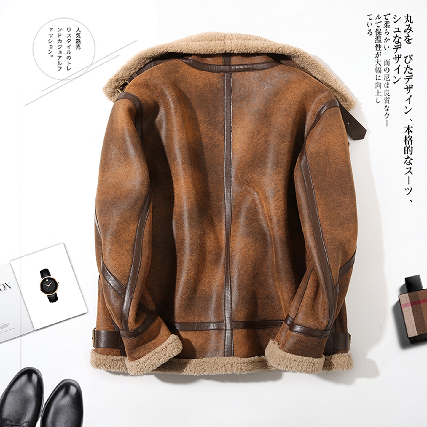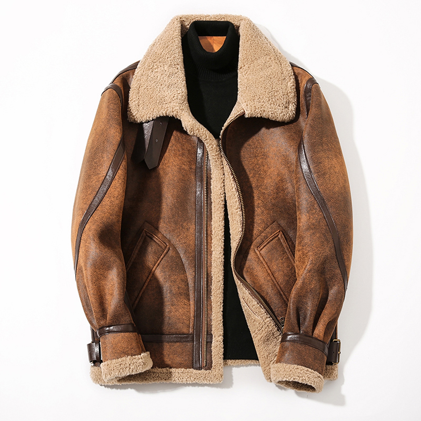 皮毛一体男士冬季大码加绒加厚皮衣短款机车服夹克男装羊羔毛外套