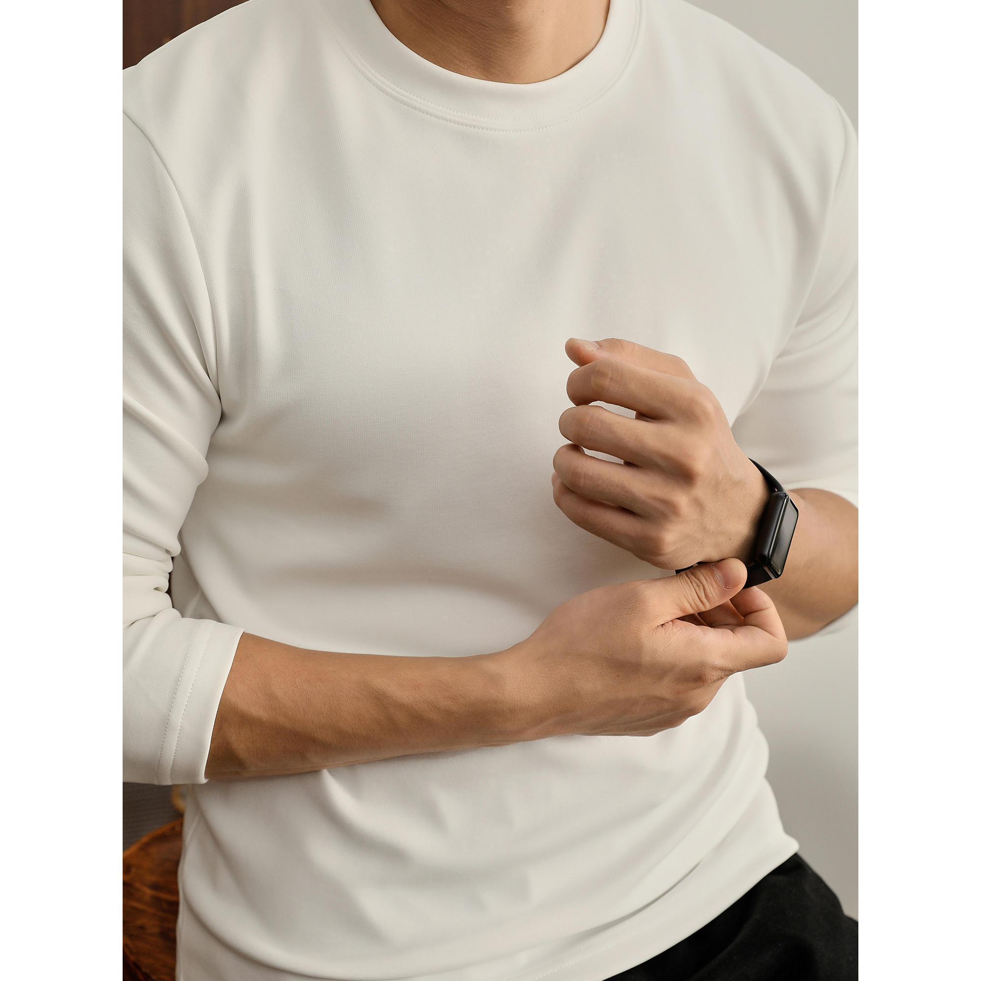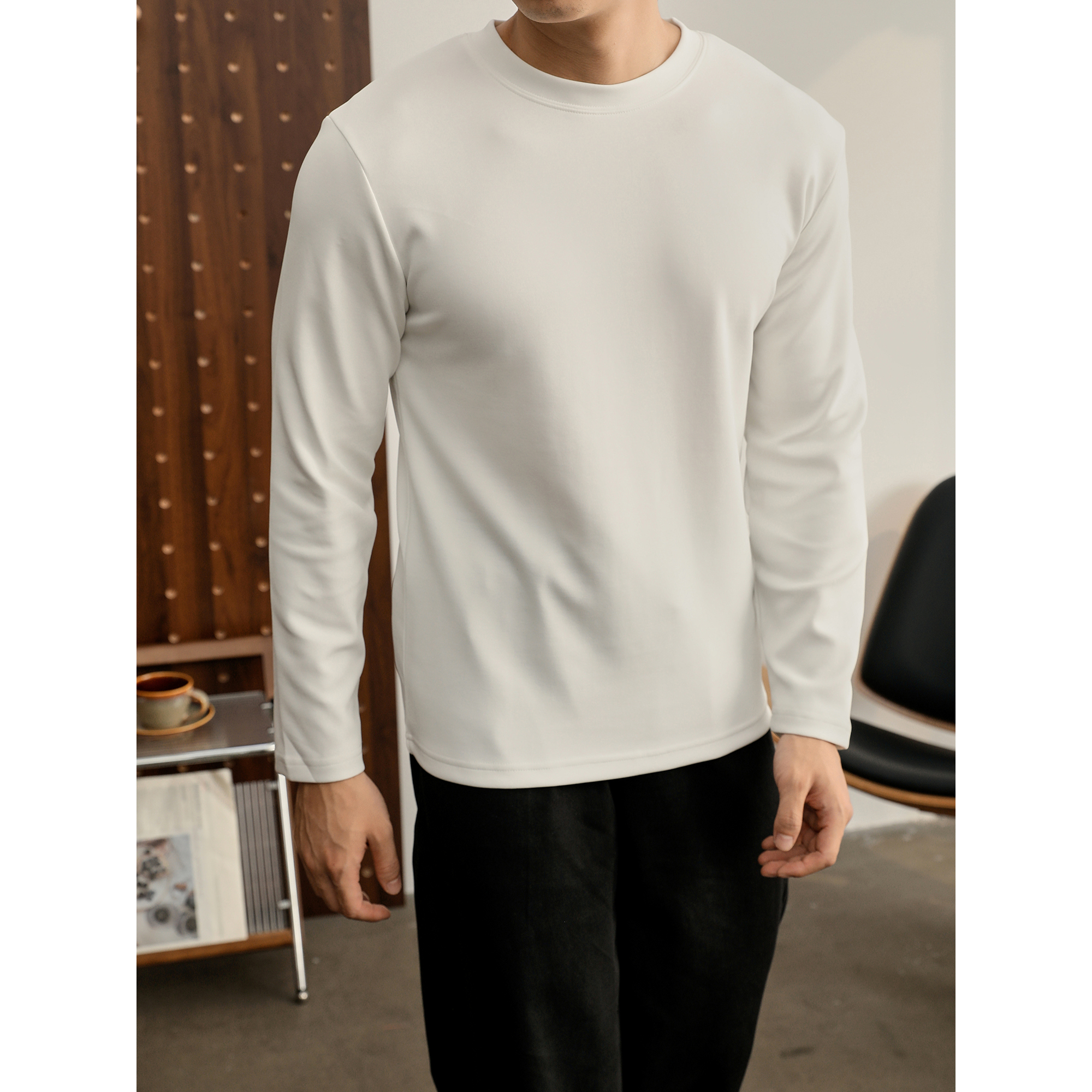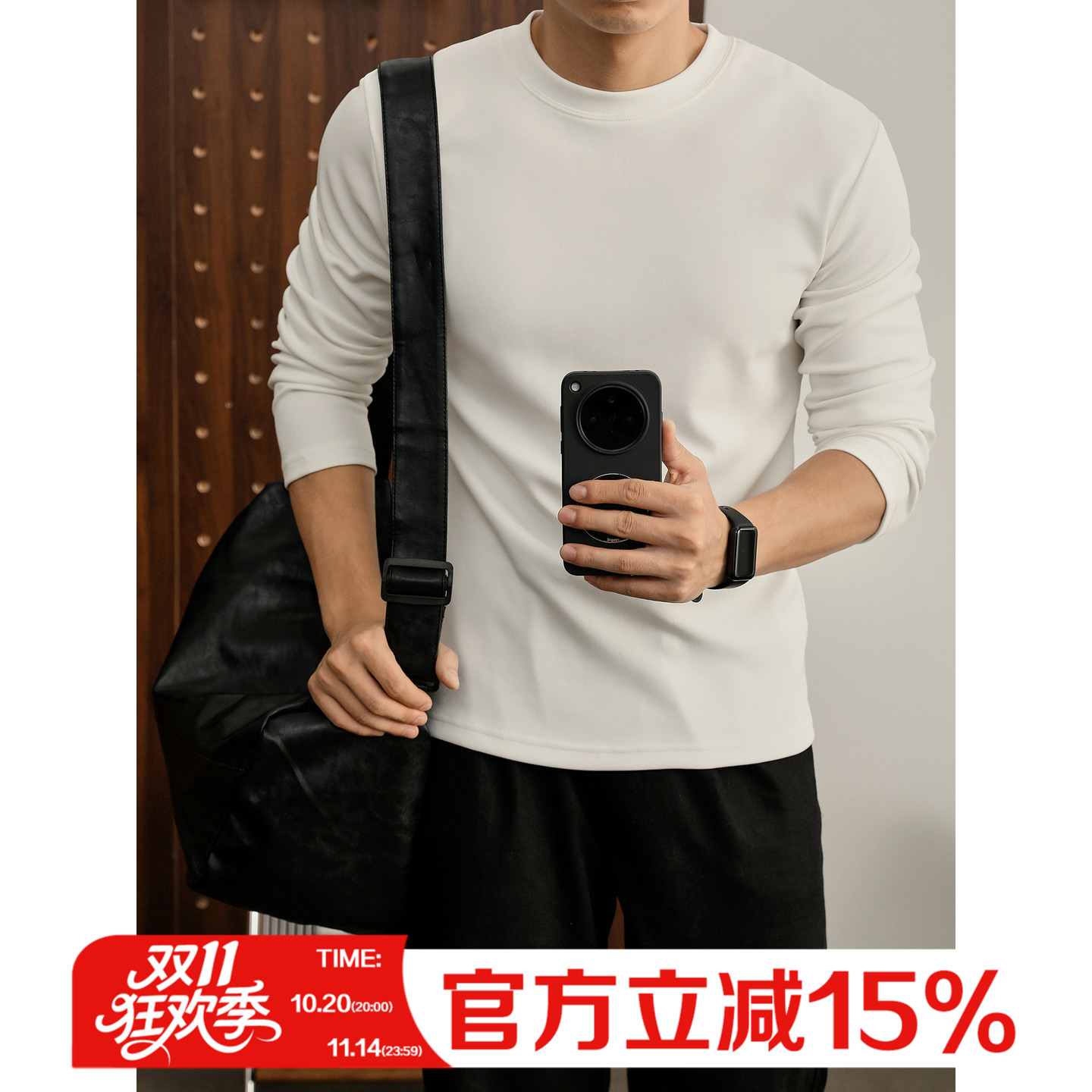 LUUD 休闲圆领打底体恤衫男士天丝莱赛尔软糯修身时尚内搭长袖