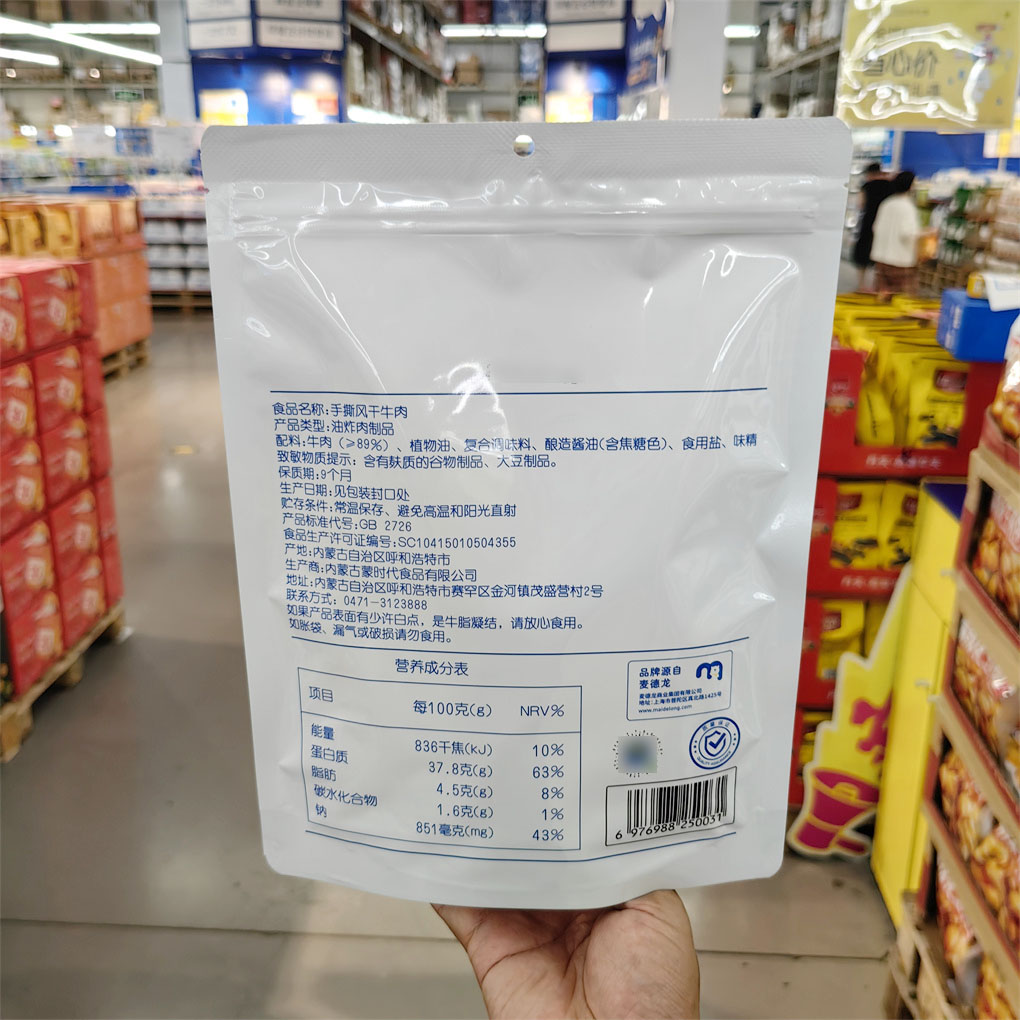 麦德龙代购宜客手撕风干牛肉干200g高蛋白原味户外便携独立小袋