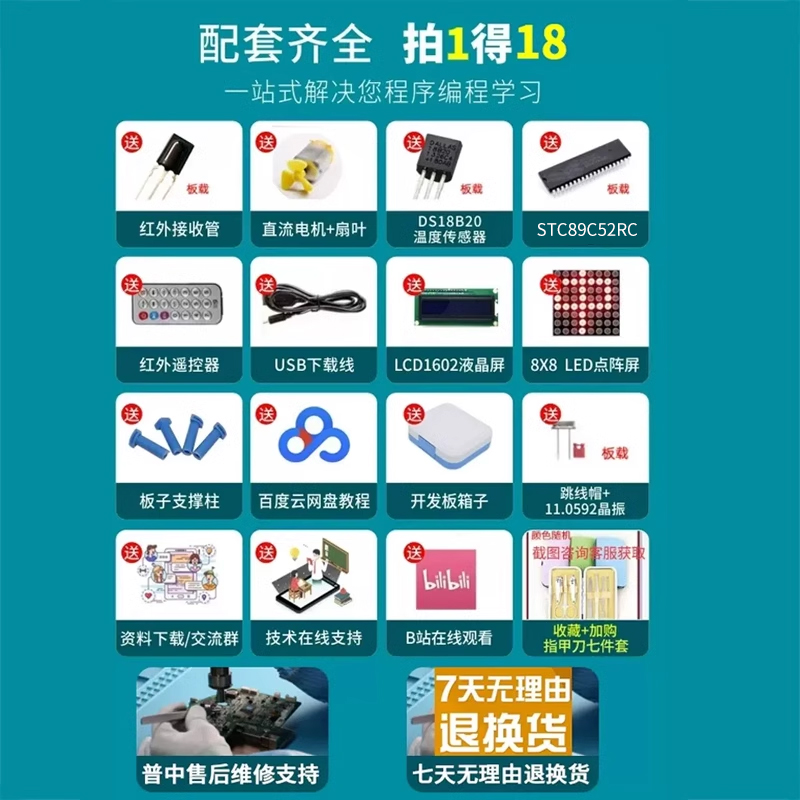 普中51单片机学习板开发板stc89c52实验板江科大C51单片机diy套件