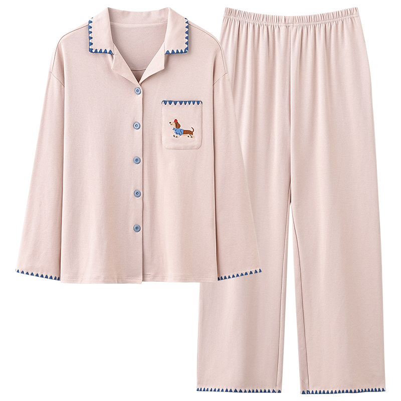 都市丽人纯棉睡衣女长袖长裤套装