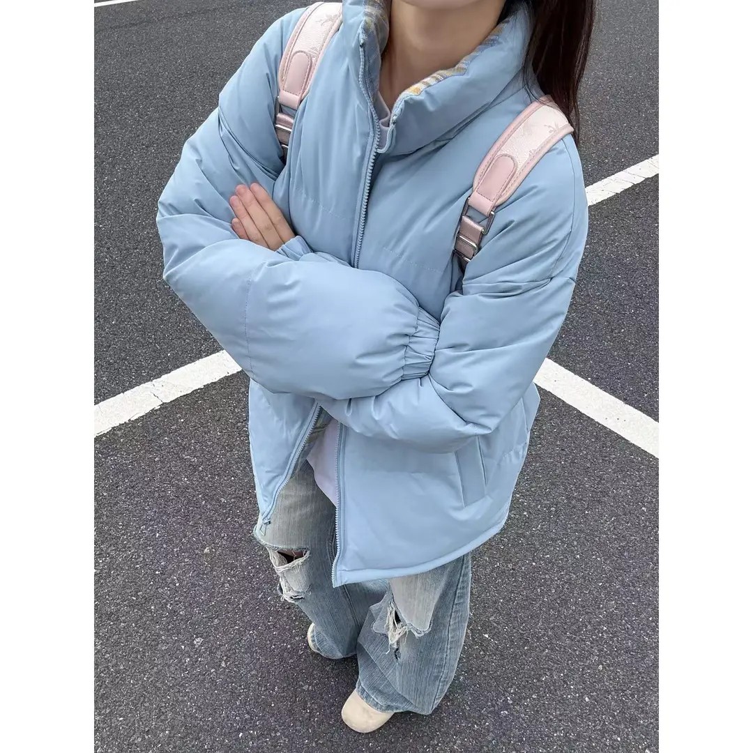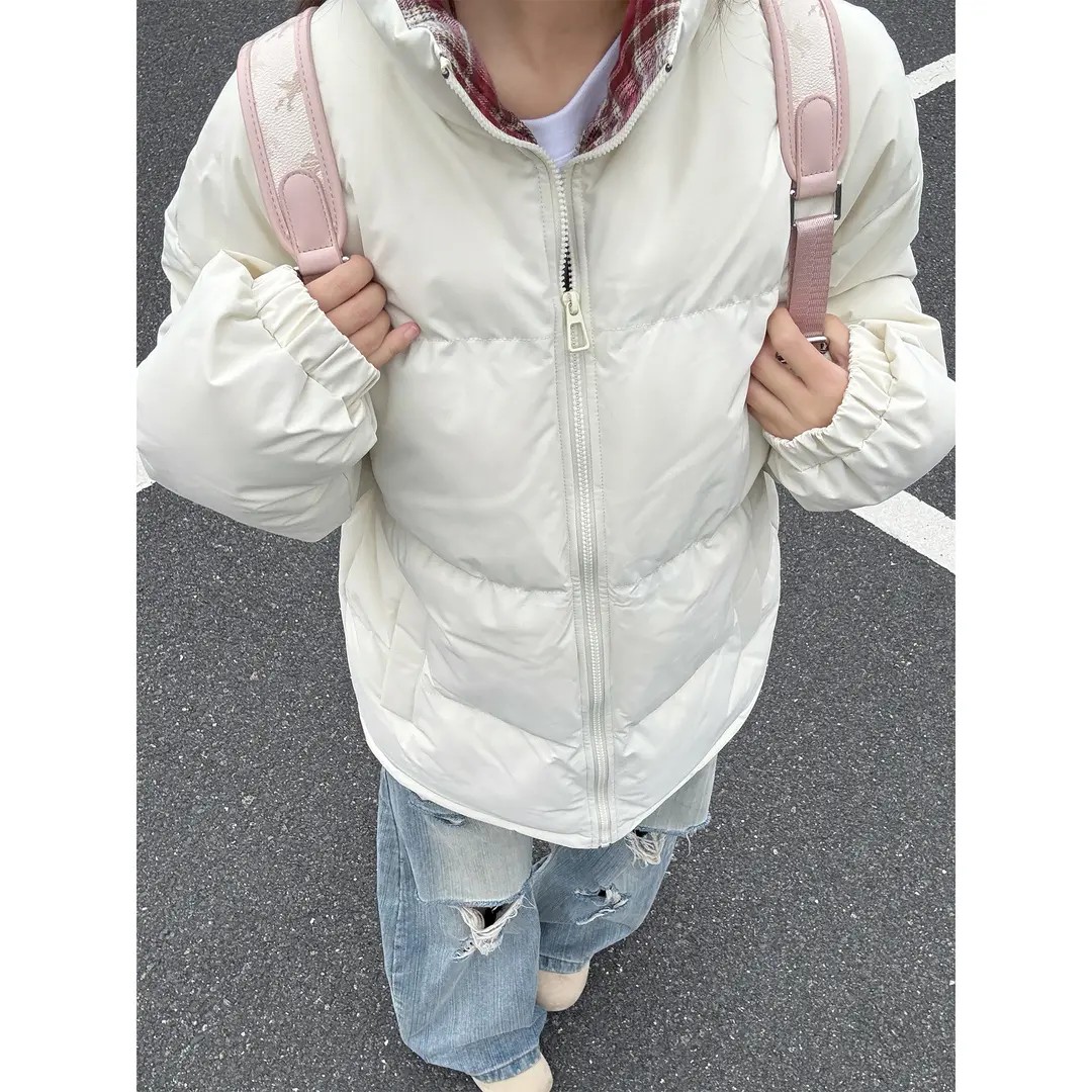 黑色格子拼接棉服男女秋冬
