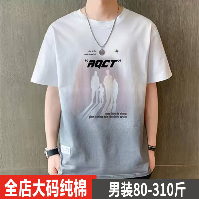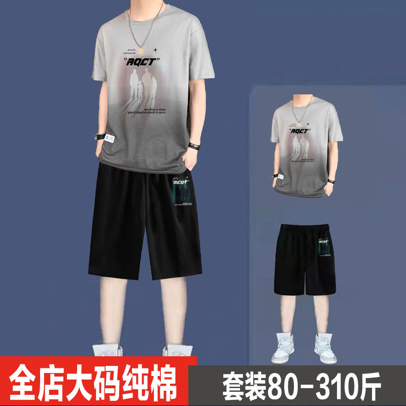 扎染纯棉T恤运动休闲套装男夏季加肥加大码胖人宽松圆领上衣短裤