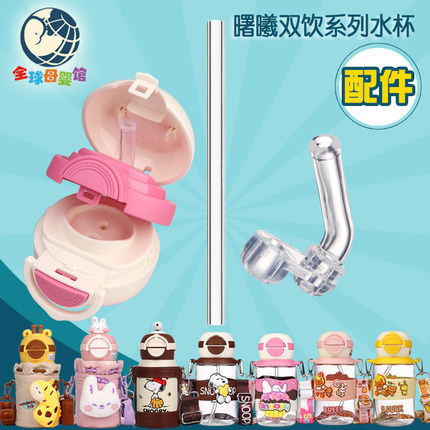 曙曦史努比小黄鸭双饮水杯专用配件杯盖原装硅胶吸嘴吸管备用套装